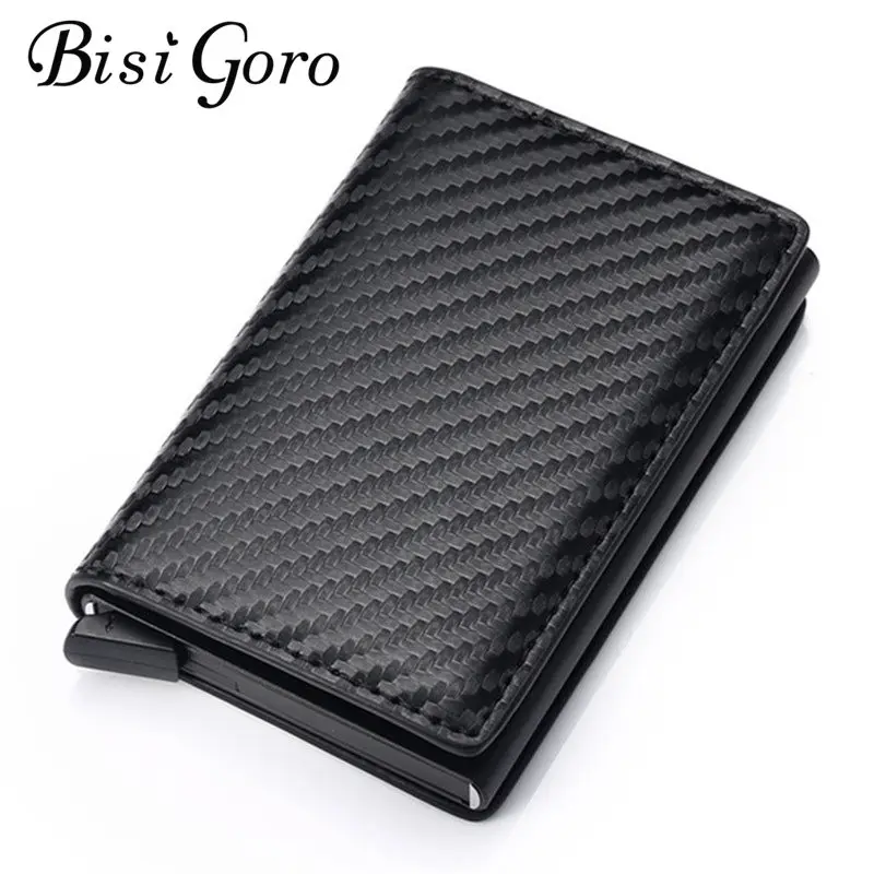 Bisi Goro2021 Блокировка кожаный бумажник RFID кредитной карты держатель для карт черный держатель для карт Алюминий тонкий металлический карта карман для удостоверения личности-дропшиппинг