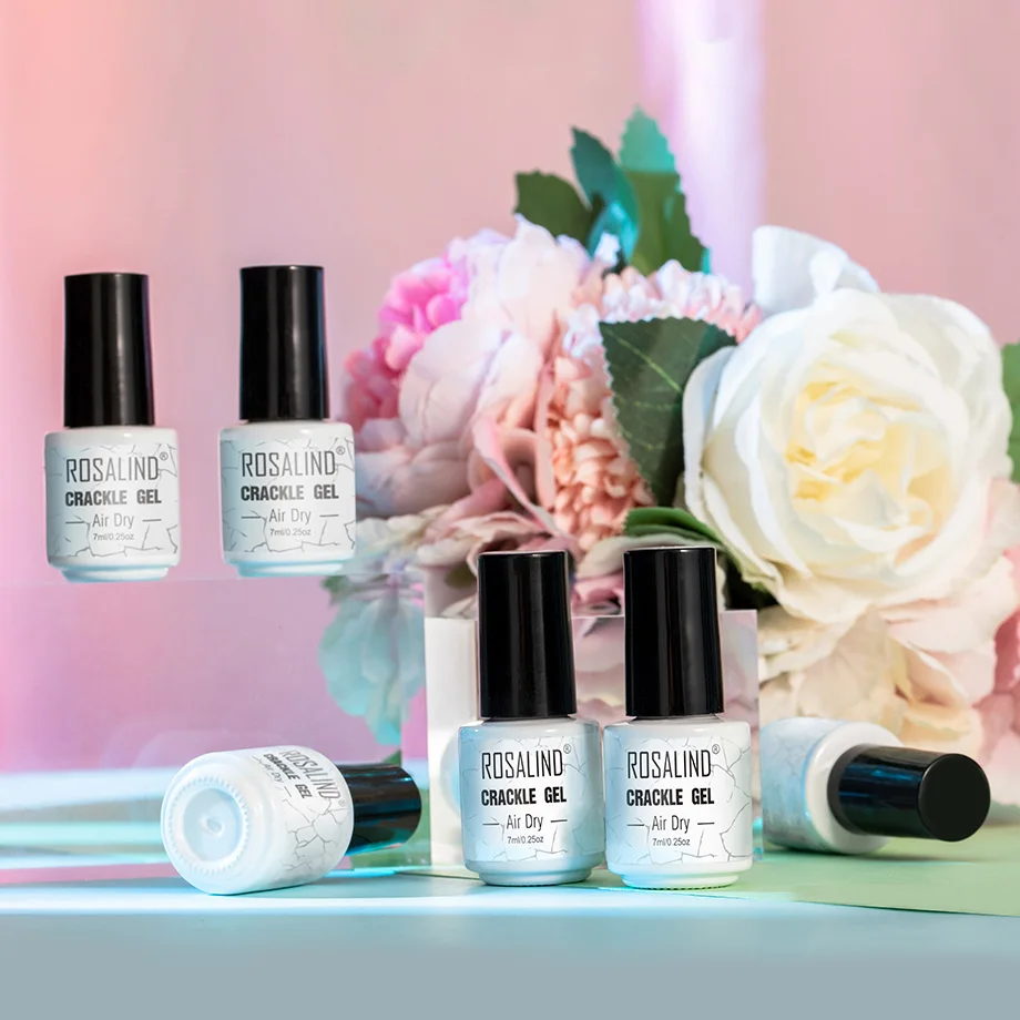 Лак для ногтей ROSALIND, гель-кракле, гибридный, трескающийся, цветная основа, набор для маникюра, полуперманентное базовое и топовое покрытие для УФ светодиодов