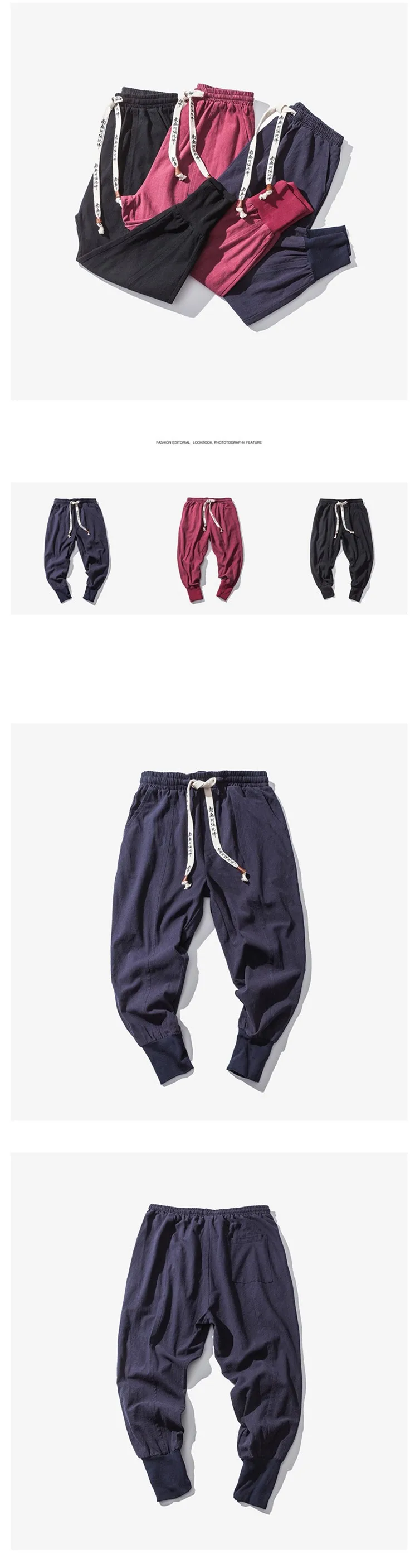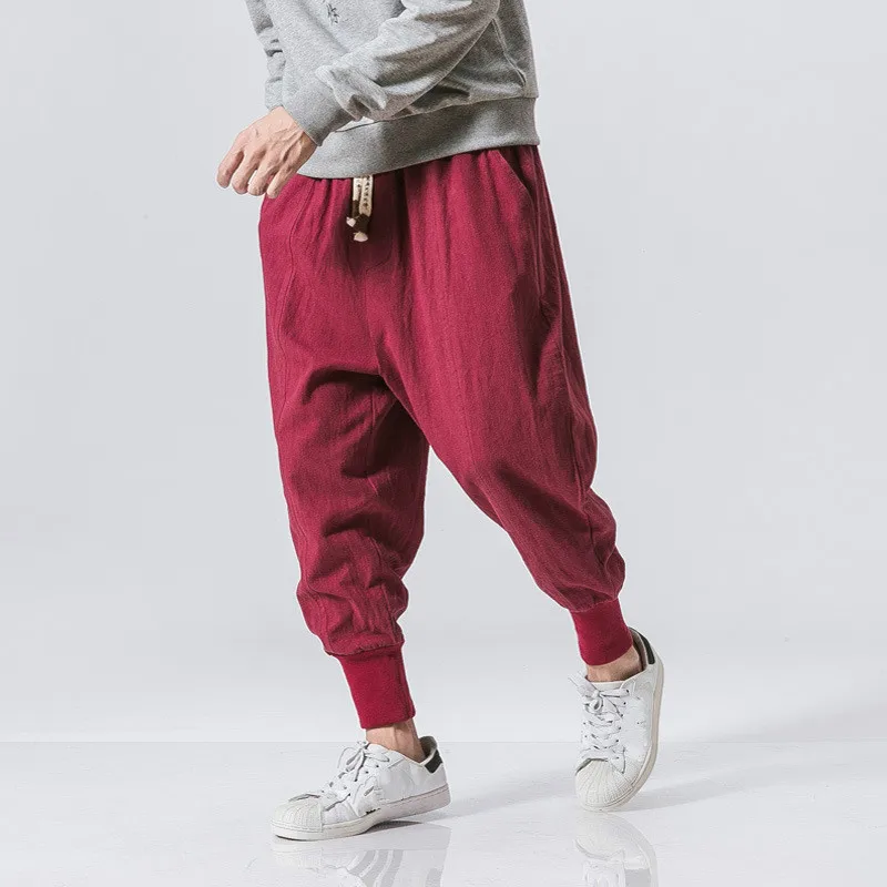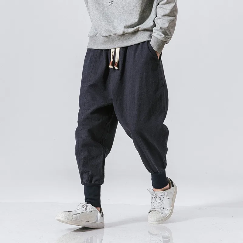 Брюки мужские хлопково-льняные в китайском стиле, повседневные своб...