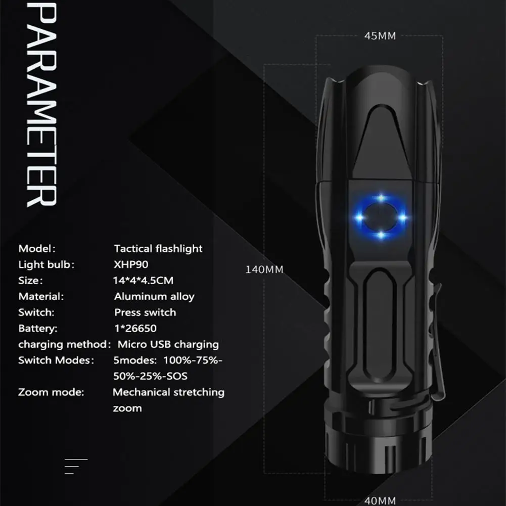 Яркий Перезаряжаемый светодиодный фонарик XHP90 Z40, тактисветильни...