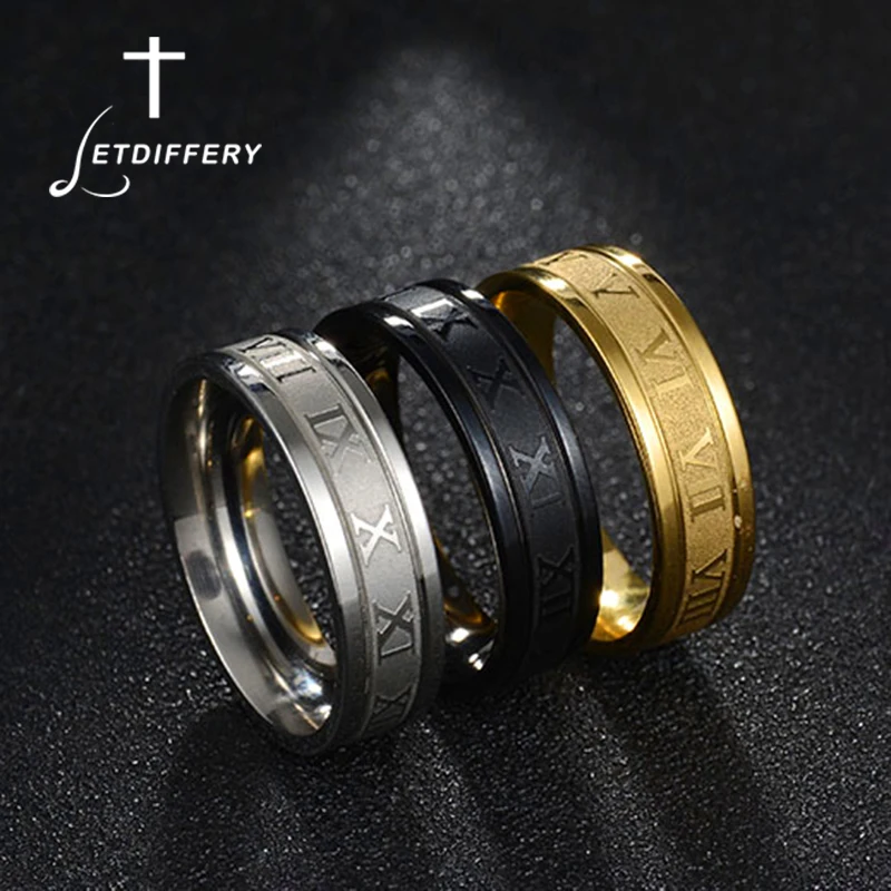 Мужские и женские кольца с римскими цифрами, из нержавеющей стали золотистого и черного цвета, 6 мм