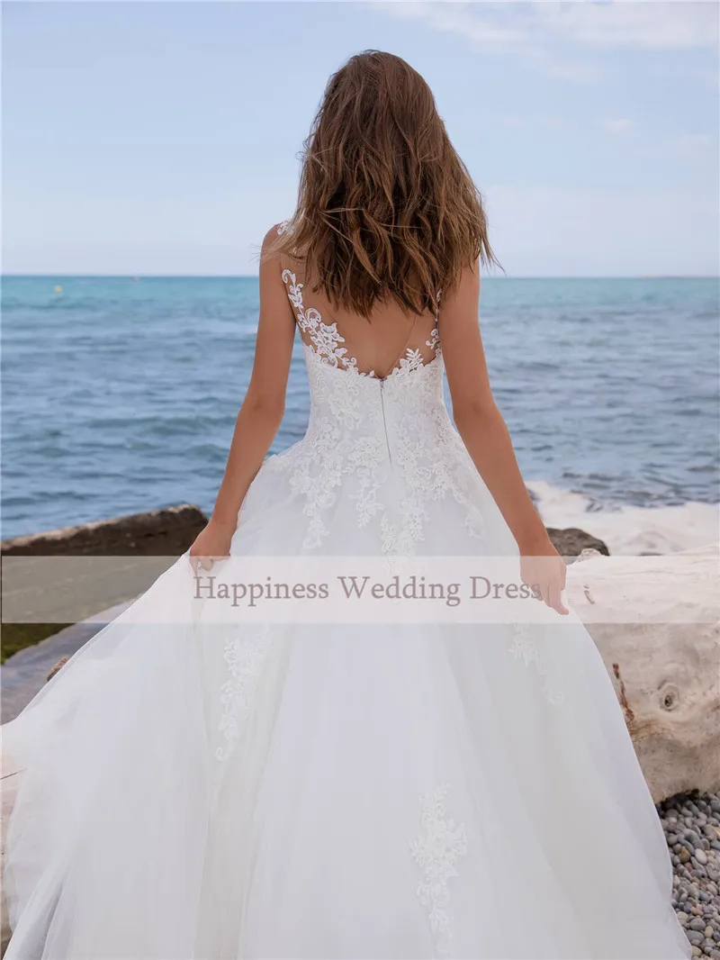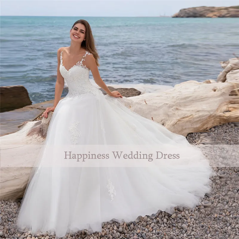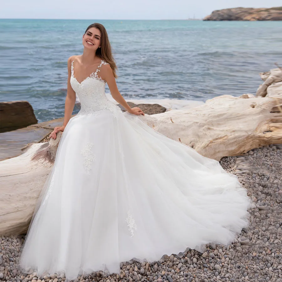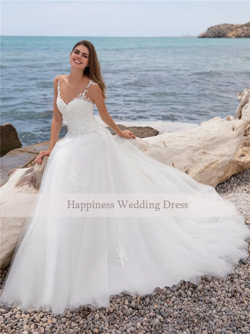 Очаровательные тюлевые пляжные свадебные платья с кружевной апплика...