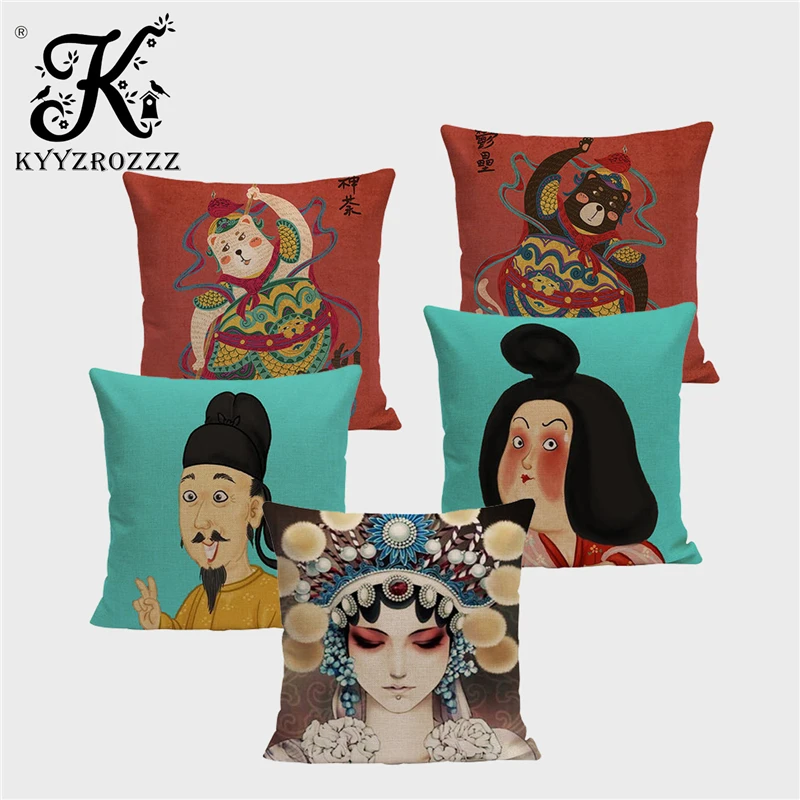 Художественный мультяшный декоративный Чехол на подушку, китайский классический стиль, украшение интерьера, автомобильная поясничная Подушка, сиденье, текстильные изделия 45*45 см