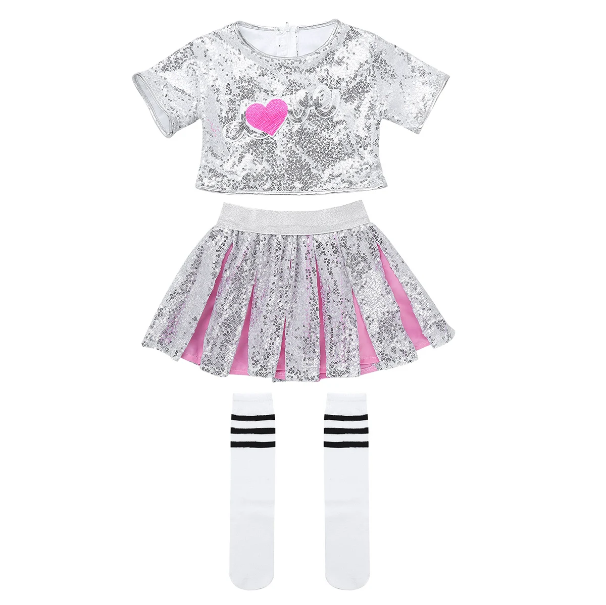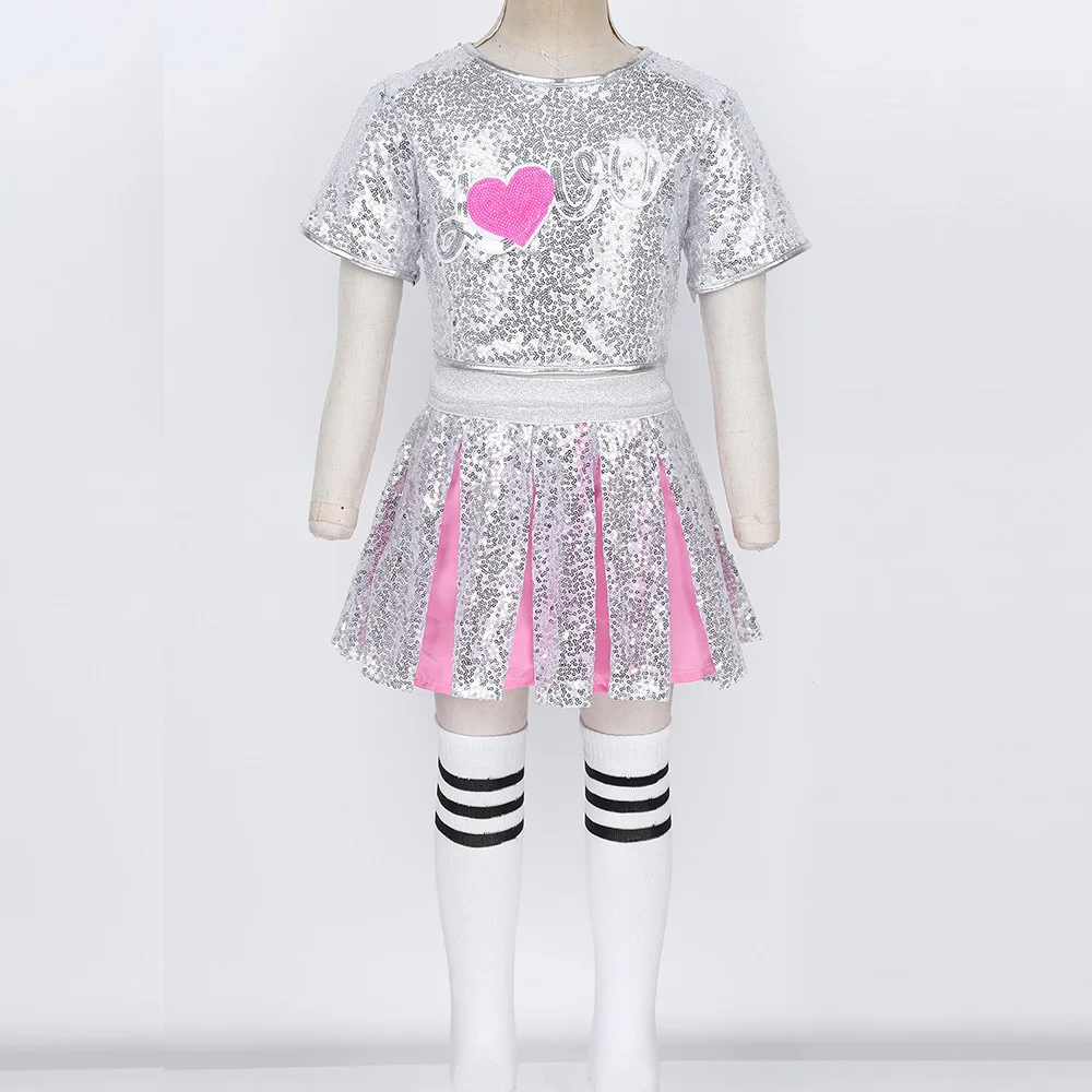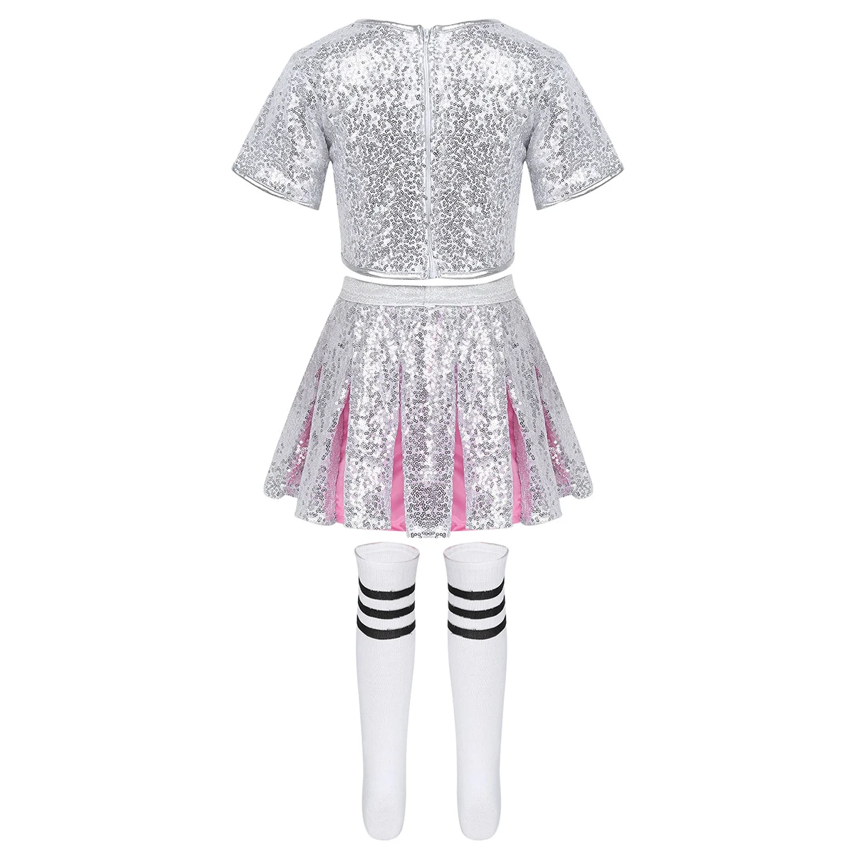 Костюм джазового танца с блестками для девочек, танцевальная одежда с блестками в стиле хип-хоп для современных девушек, танцевальные аксессуары
