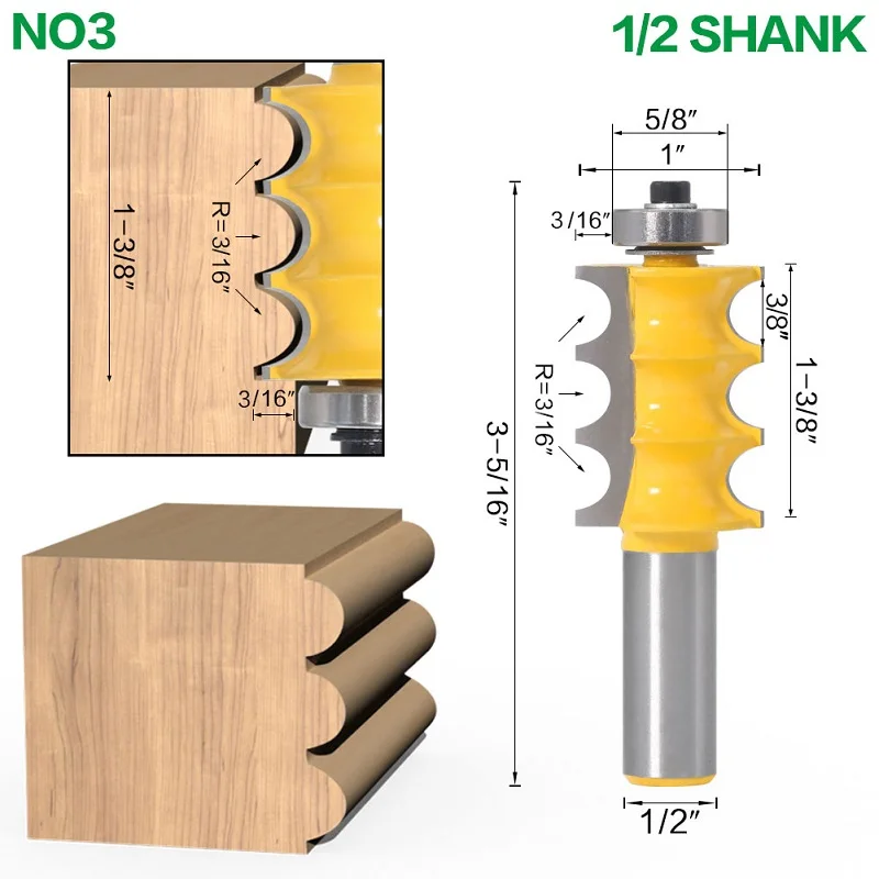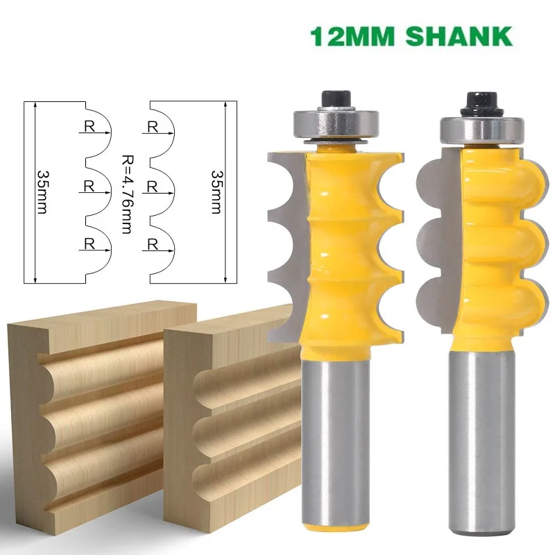 2 шт. Тройная бусина и тройная канавка большие формовочные фрезы линейный нож деревообрабатывающий резак-хвостовик 6 мм6,35 мм8 мм12 мм12,7 мм