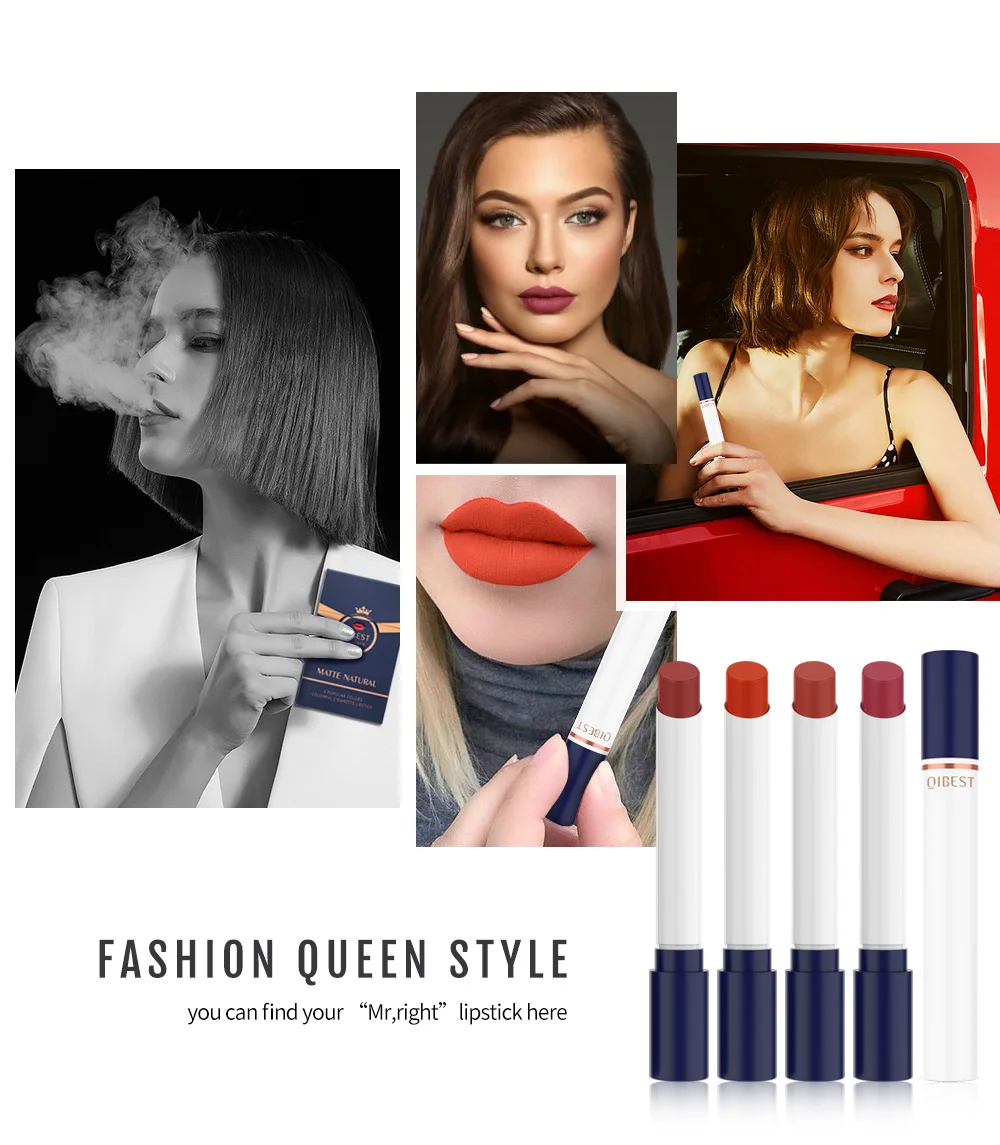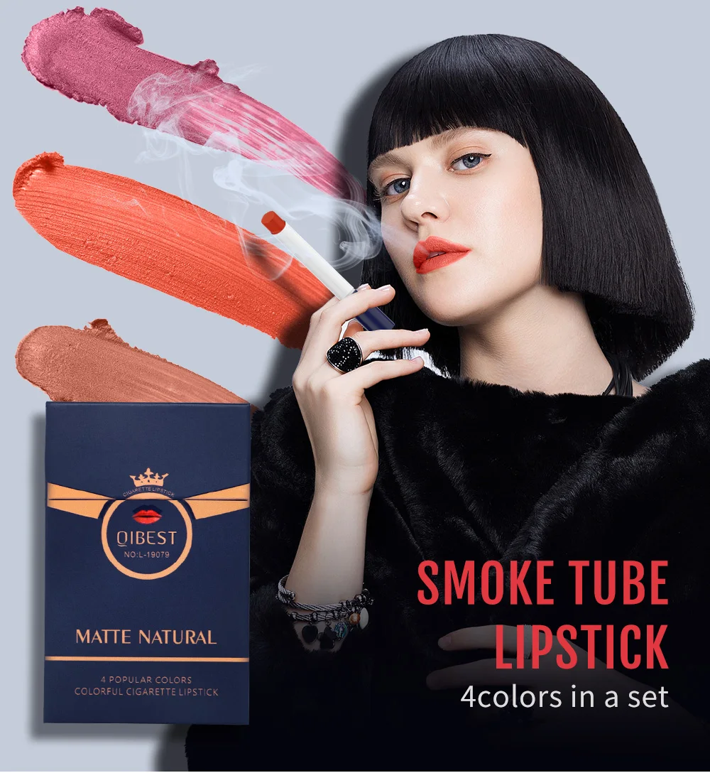 Qibest, 4 цвета, бархатная матовая стойкая водостойкая губная помада для сигарет, туманная поверхность, сексуальная телесная губная помада, губная помада TSLM1
