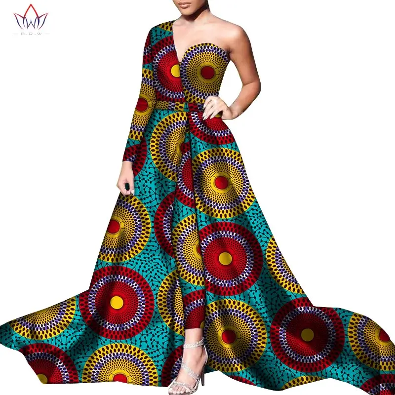 Комплект из 2 предметов, африканские платья с одним плечом и брюки, Дашики, африканские платья для женщин, африканская одежда, платье, брюки, WY6055