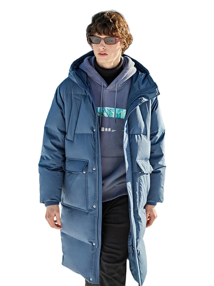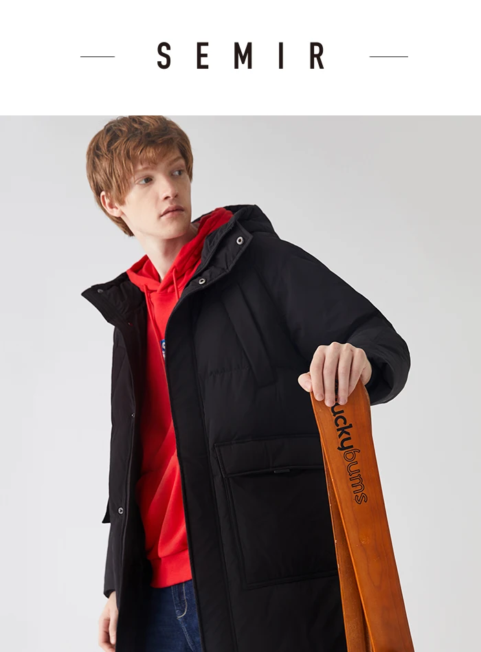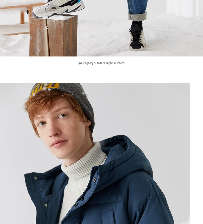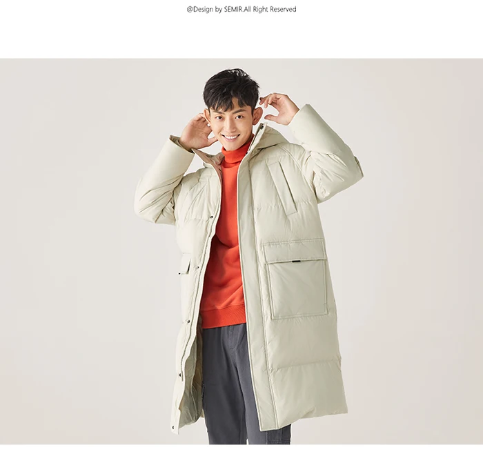 Куртка SEMIR мужская пуховая свободного покроя, длинное пальто в Корейском стиле, Повседневная Толстая куртка на утином пуху с капюшоном, зима 2019