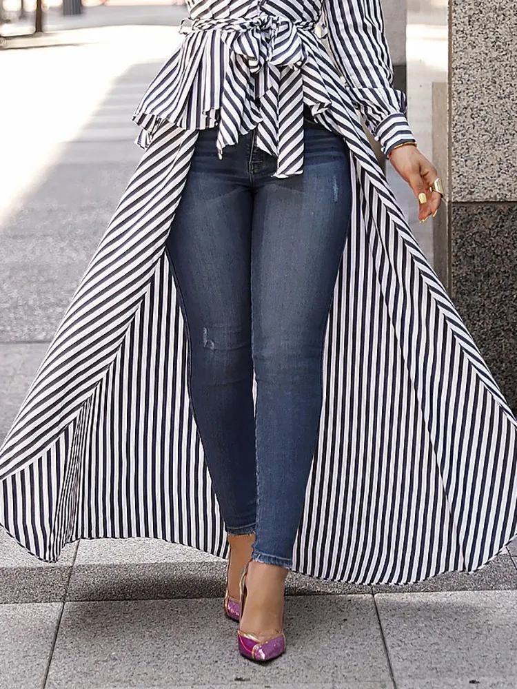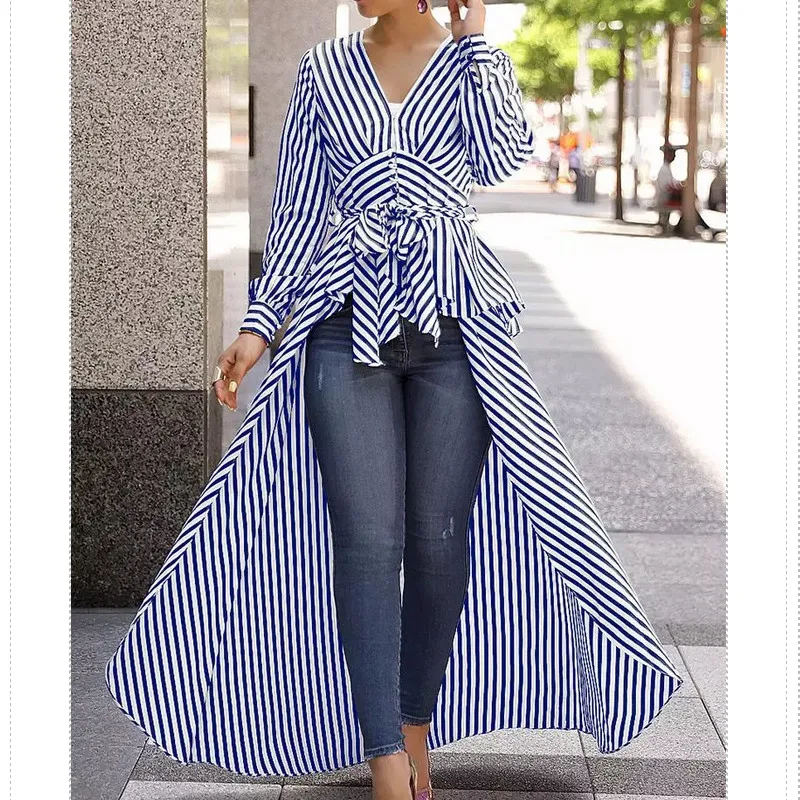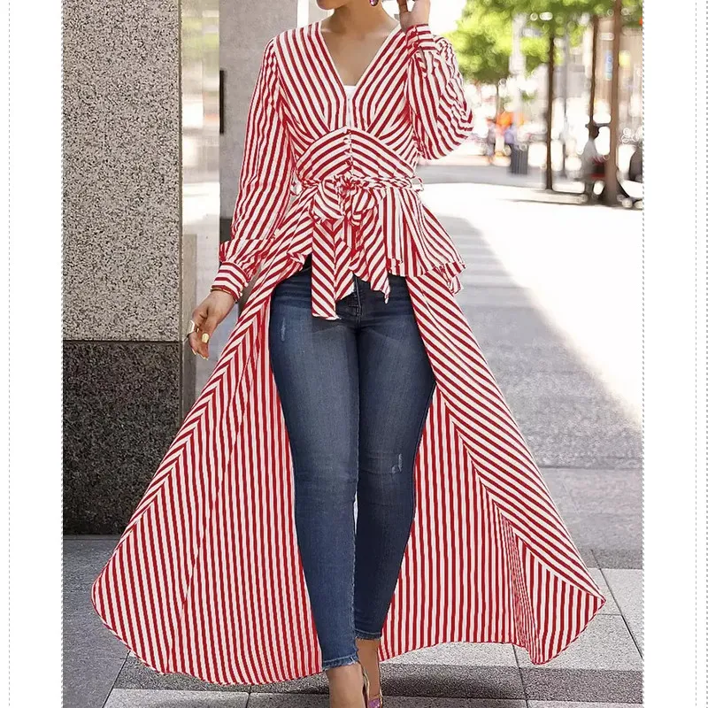 Новое асимметричное платье-рубашка в полоску, накидка для бикини, женское свободное платье-кимоно с длинным рукавом, пляжная одежда, повседневное пляжное платье