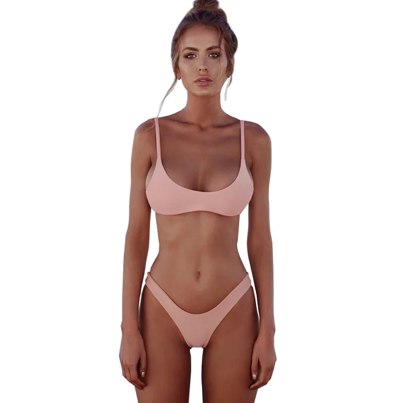 Новый однотонный сексуальный комплект бикини женский купальный кост...