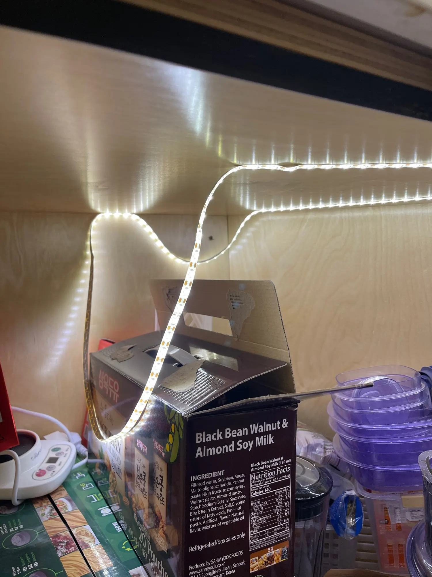 Клейкая лента на светодиодной ленте вынимает alao. Клей. Клей держится на ленте, а не на ленте. Поэтому мне нужно приклеить ленту с помощью моей двусторонней клейкой ленты.