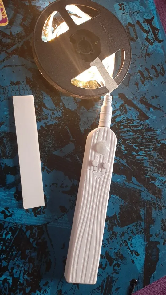 Вставила батарейки (4 штуки, мизинчиковые) все работает, горит ярко. Есть три режима работы, можно отключить совсем. Датчик движения срабатывает при малейшем движении.