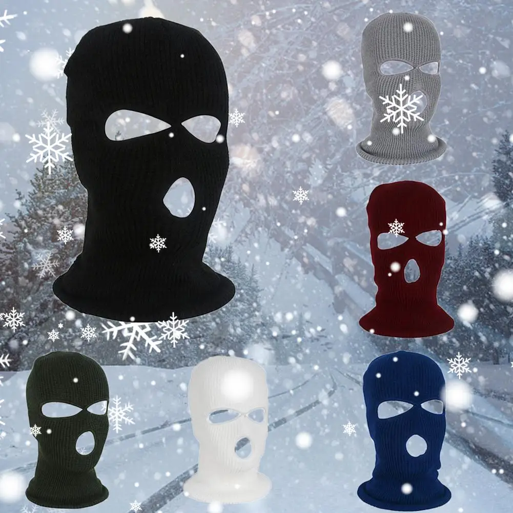 Зимняя Балаклава, маска на все лицо с 3 отверстиями, шапка, вязаная мотоциклетная маска для лица, наружная защита для езды на мотоцикле, лыжах, альпинизма, накладка на голову