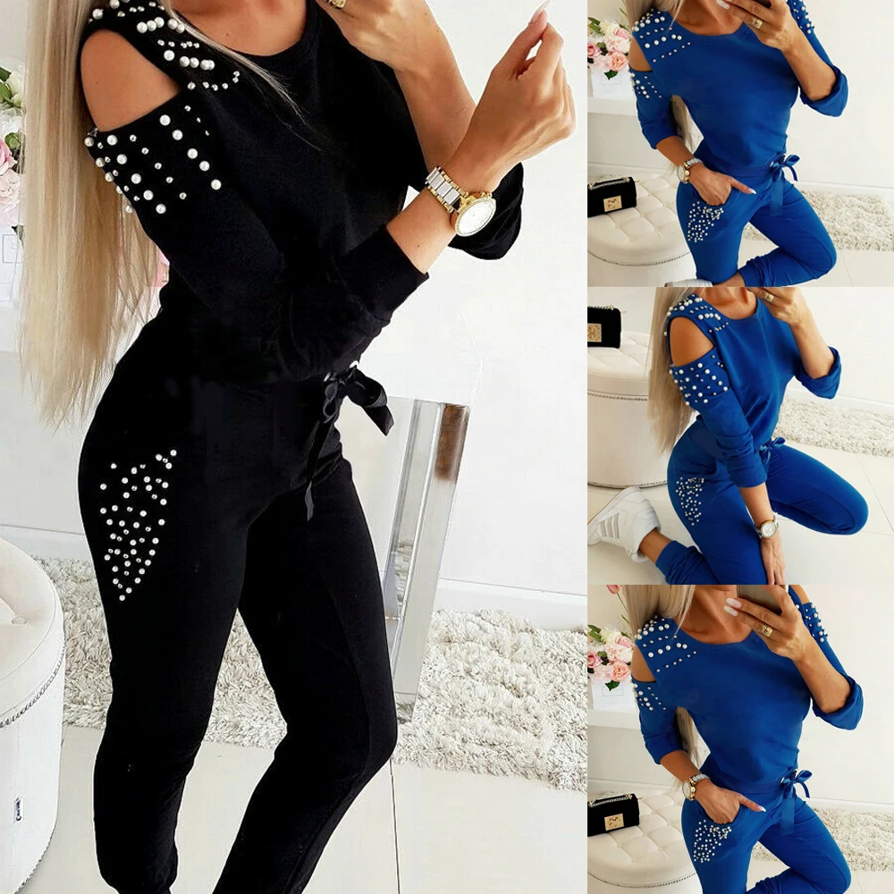 Спортивный костюм для бега Женский, с длинным рукавом и жемчугом