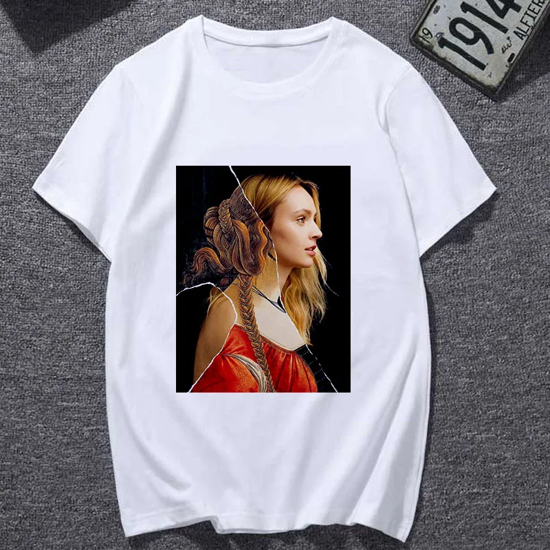 Новый летний Mona Lisa футболка пародия личности модная футболка для женщин Ullzang в винтажном стиле, рисунок с героями мультфильмов, на рост от 90s белые топы для женщин