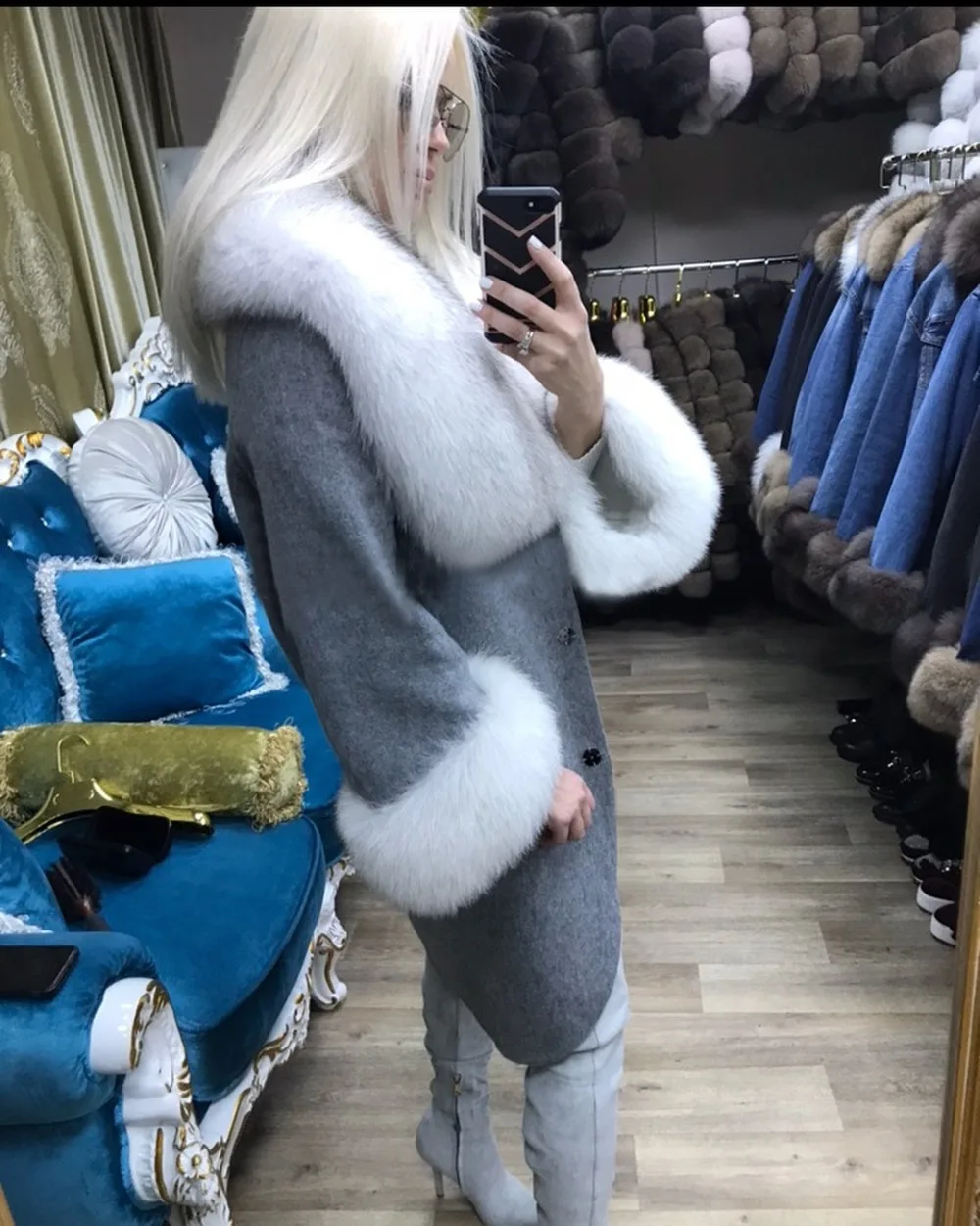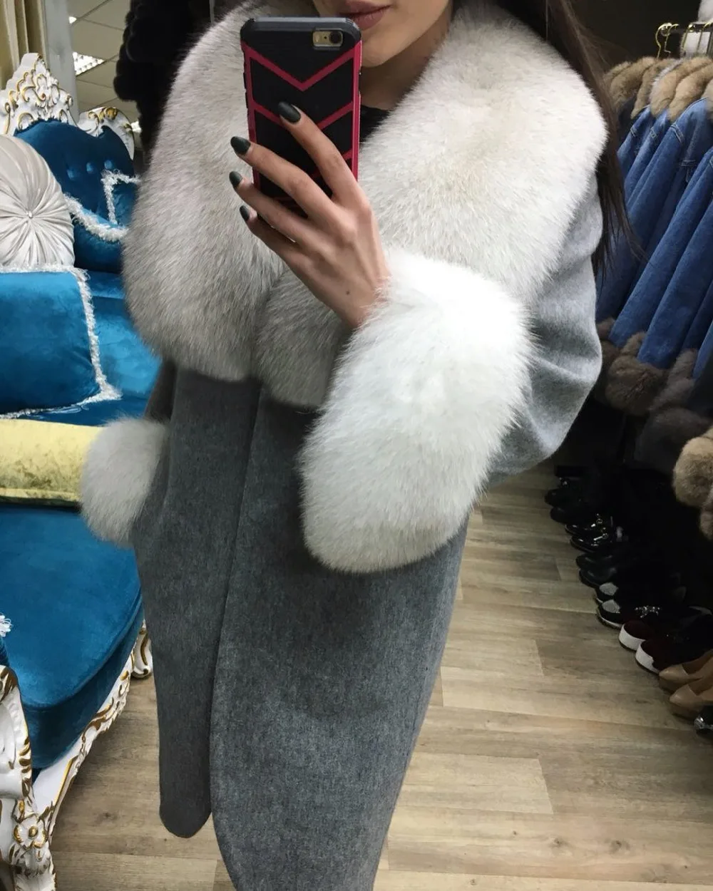 fur fox women coatcoat fur natural women Woolen Blends