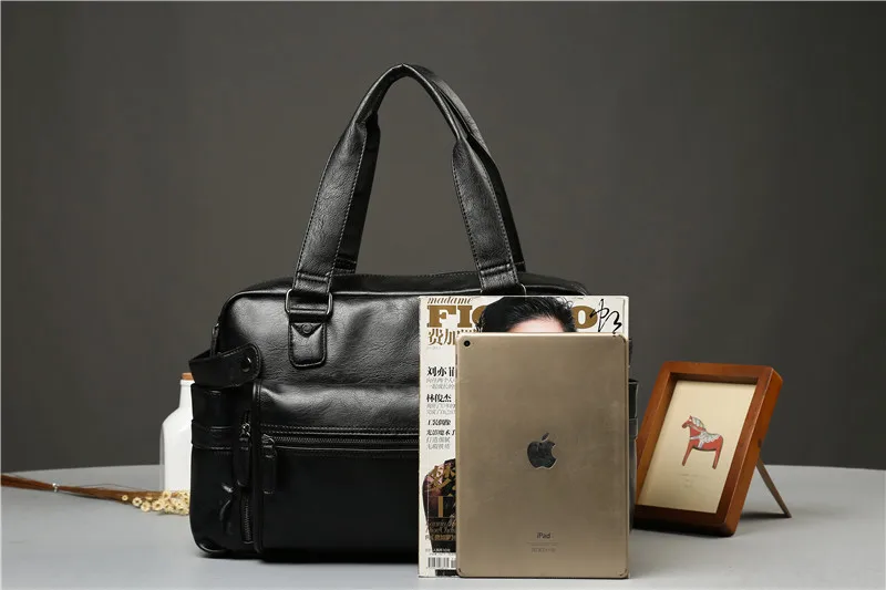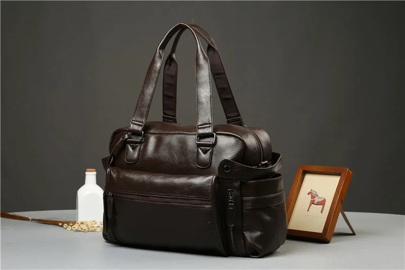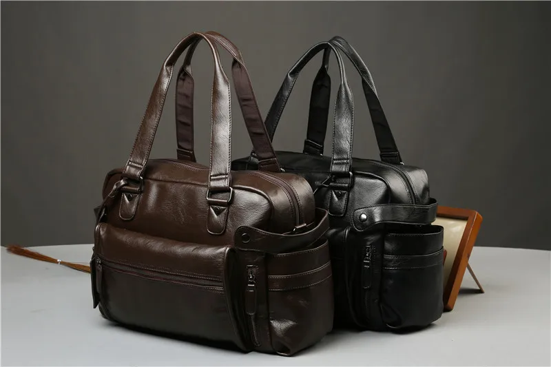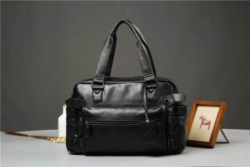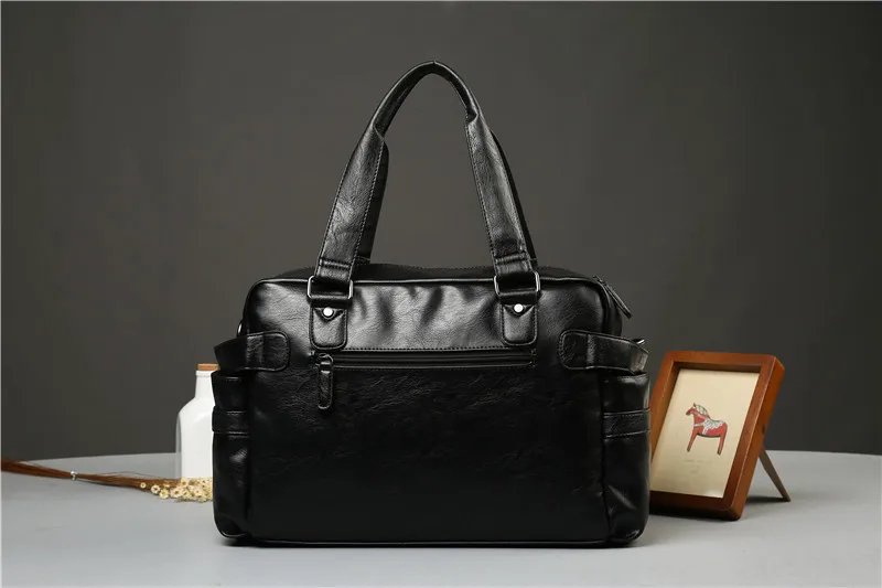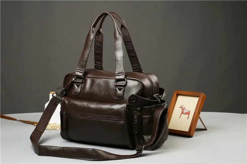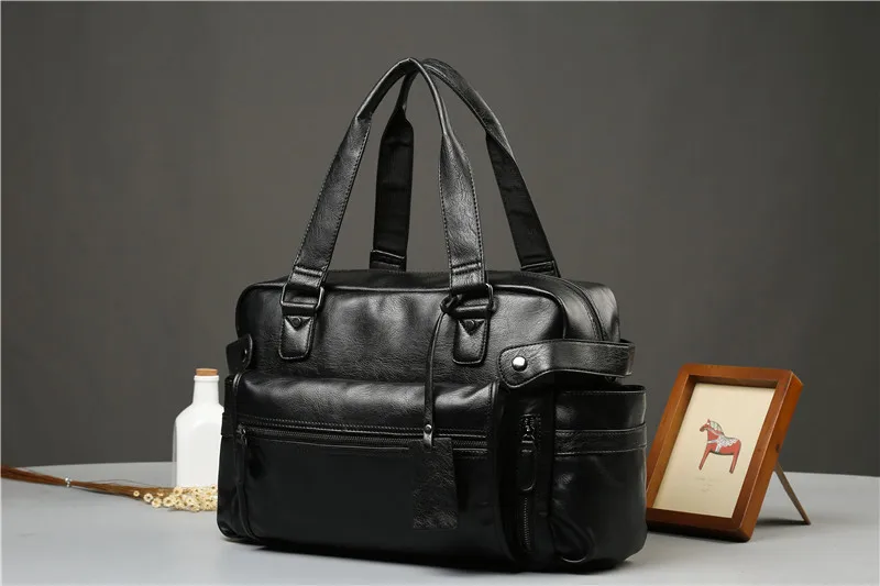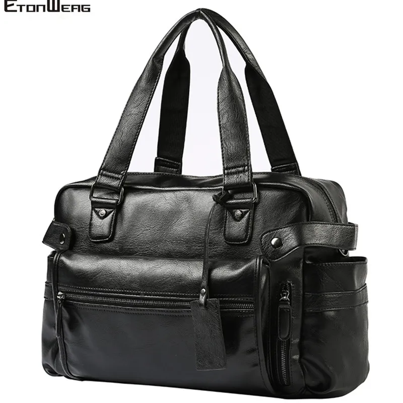 Мужской деловой портфель из искусственной кожи, водонепроницаемая сумка, Мужская большая однотонная дорожная сумка, Повседневная многофункциональная сумка для ноутбука