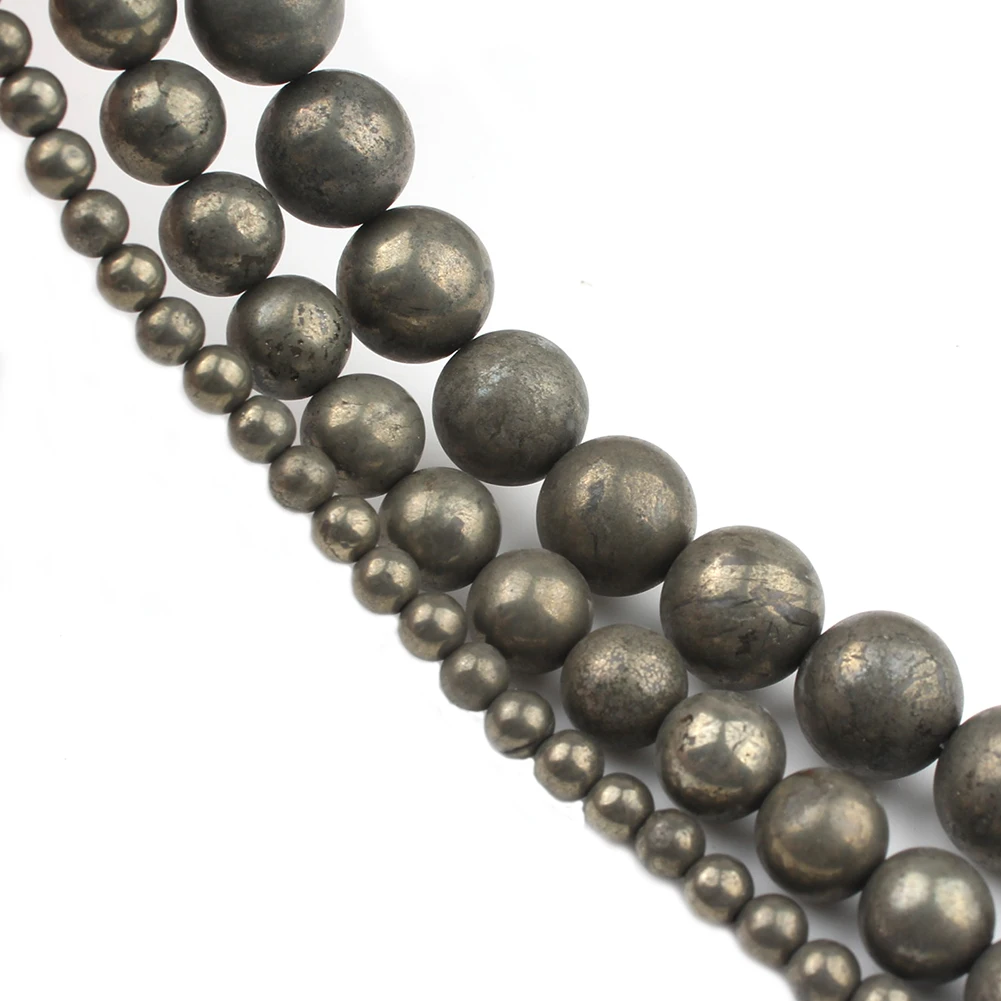 Натуральный камень железа Пирит Камень круглые бусины Свободные Spacer Бусины для самостоятельного изготовления ювелирных изделий Браслеты Цепочки и ожерелья 15 "дюймов 46810 мм оптовая продажа