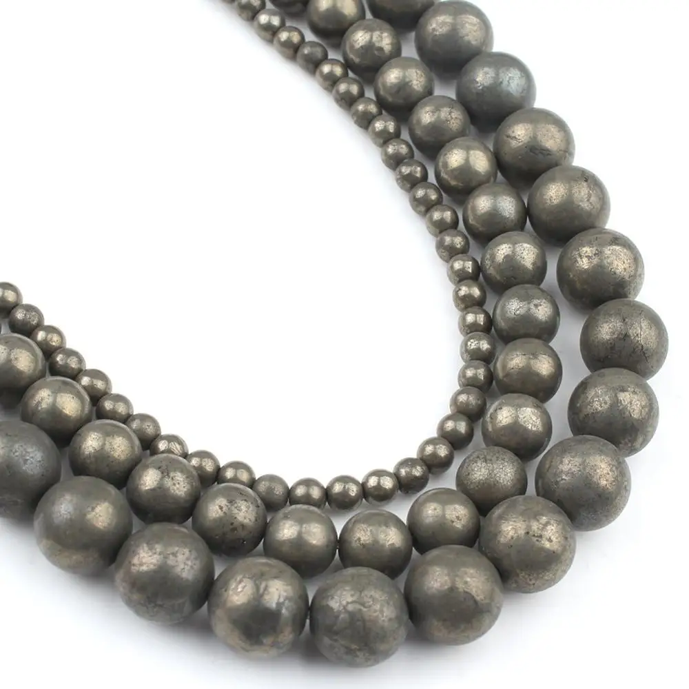 Натуральный камень железа Пирит Камень круглые бусины Свободные Spacer Бусины для самостоятельного изготовления ювелирных изделий Браслеты Цепочки и ожерелья 15 "дюймов 4/6/8/10 мм оптовая продажа