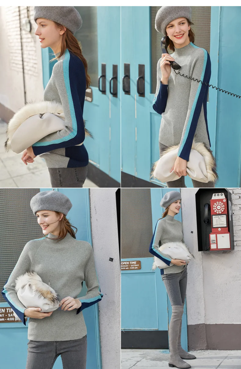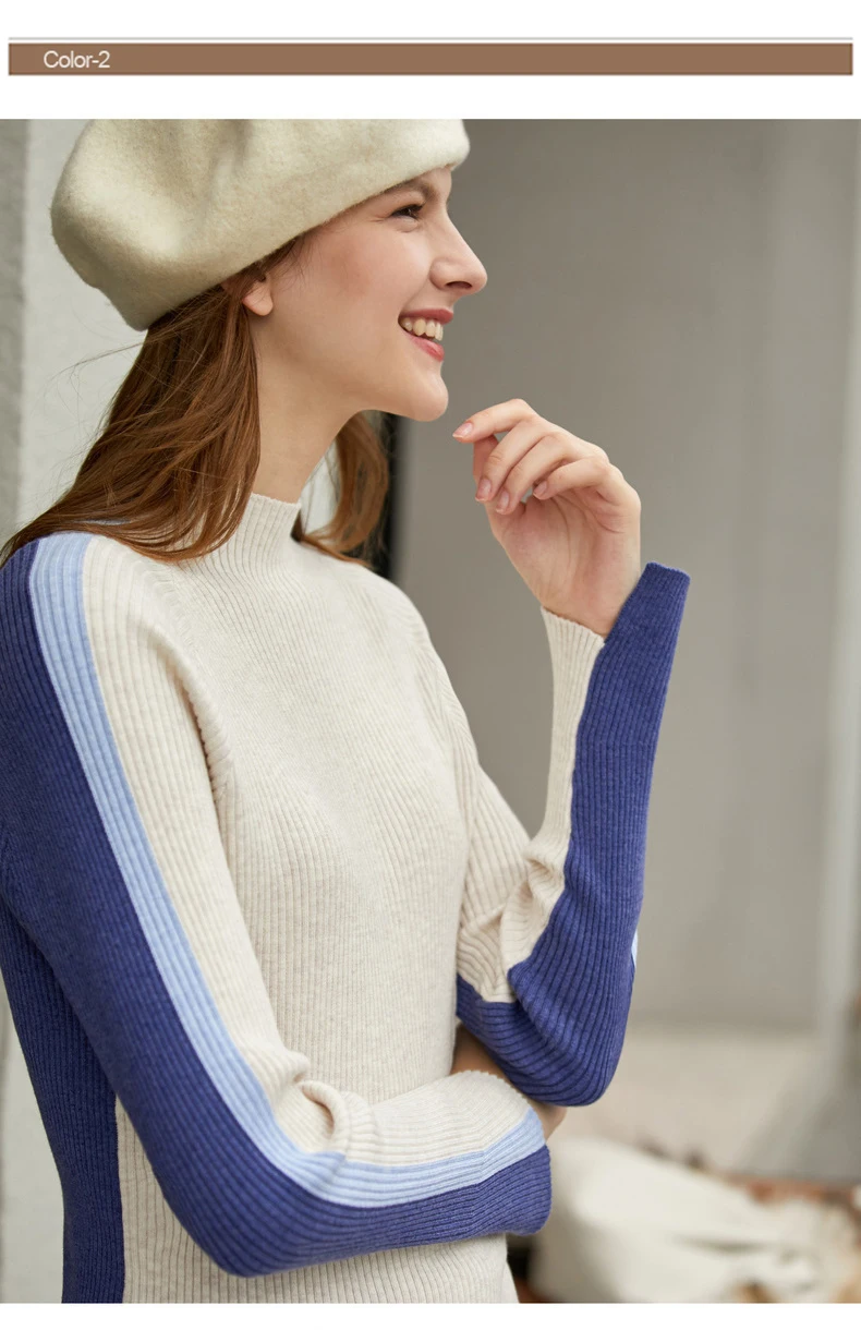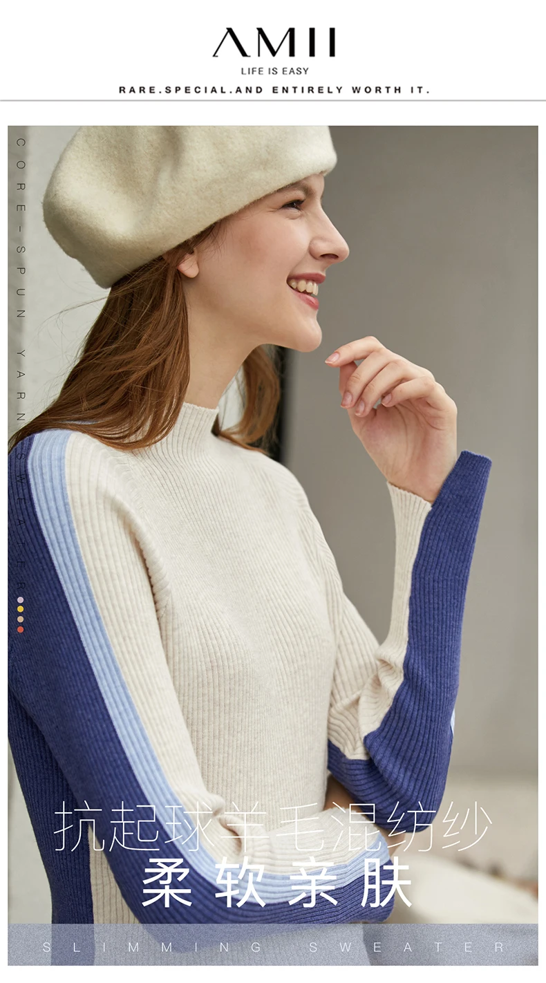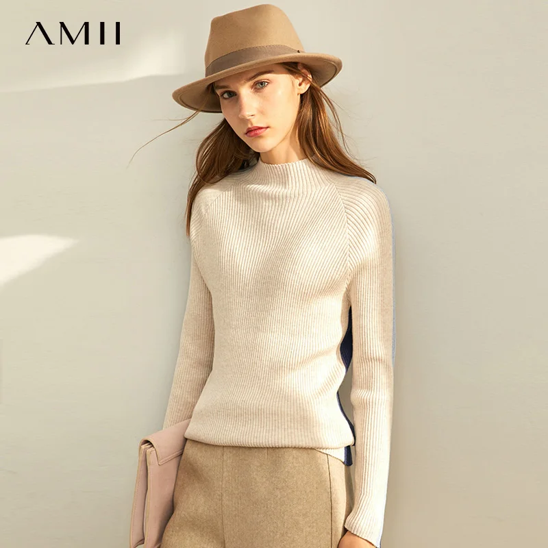 Amii минимализм зимние женские свитера модные контрастные водолазки трикотажные топы офисные женские теплые пуловеры Женская одежда 12040973