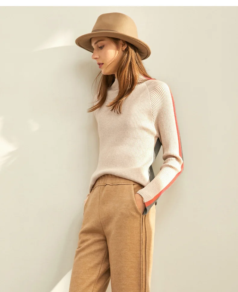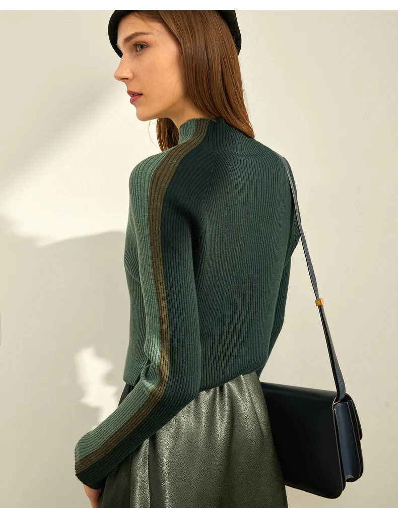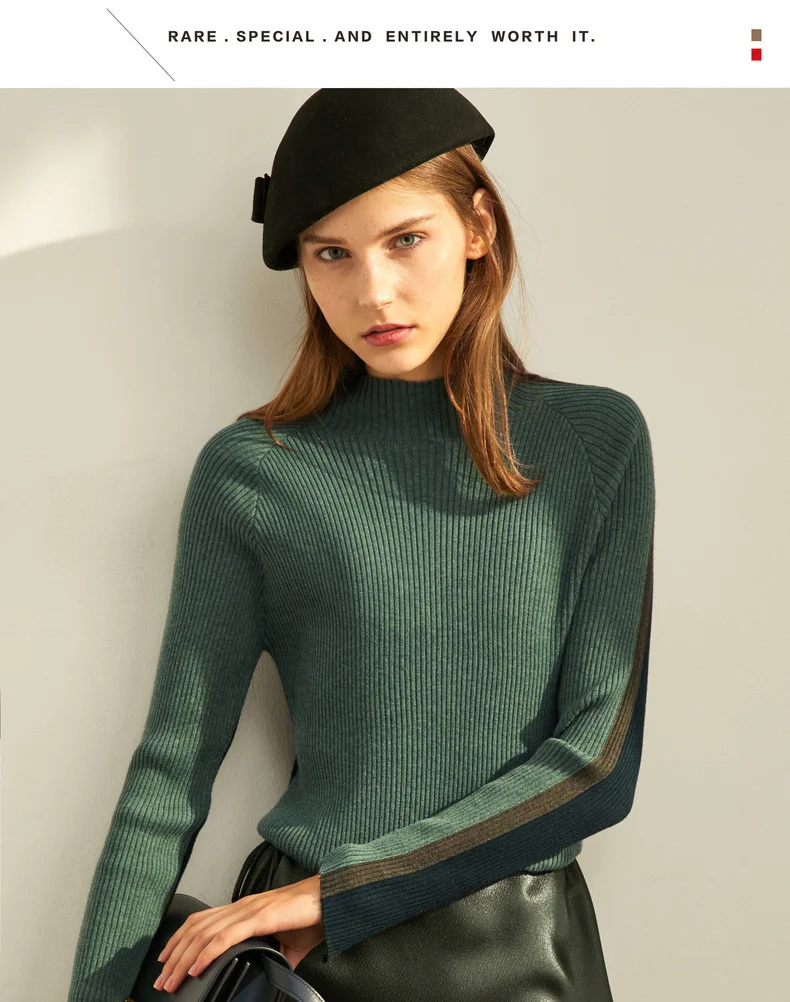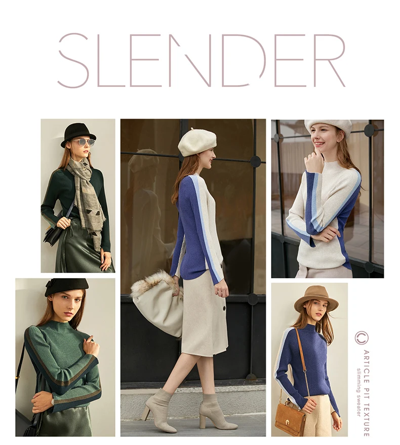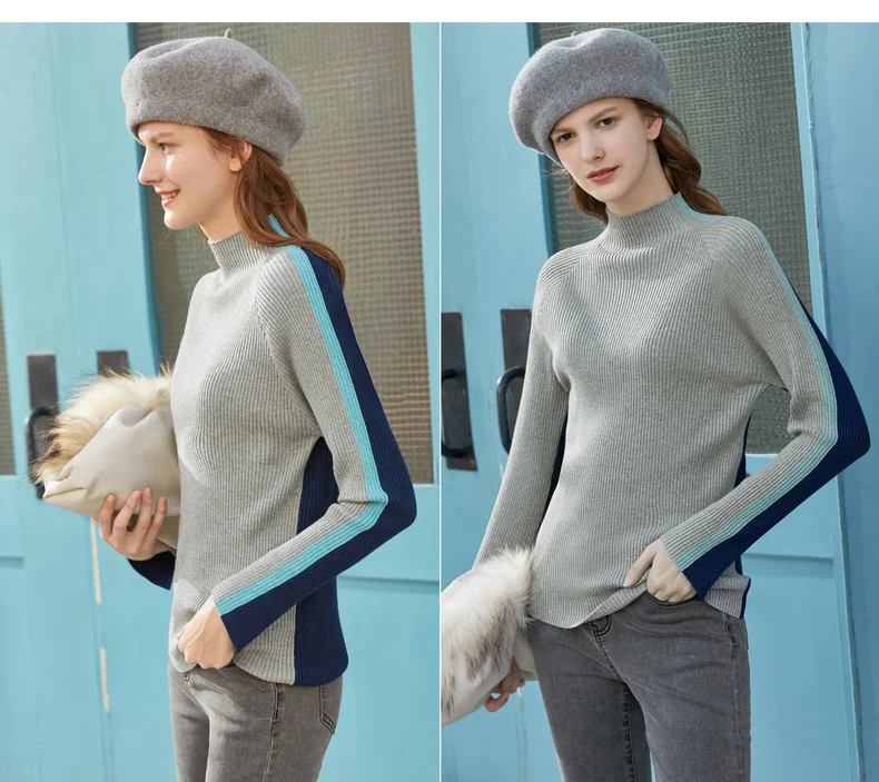 Amii минимализм зимние женские свитера модные контрастные водолазки трикотажные топы офисные женские теплые пуловеры Женская одежда 12040973