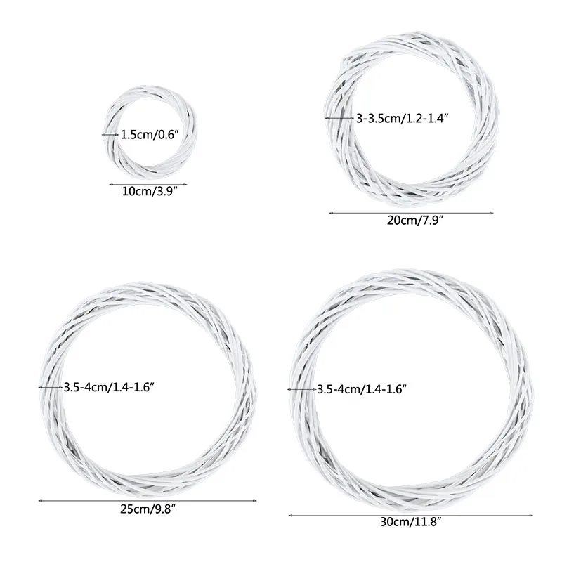 Металлическая гирлянда обруч-венок из натурального ротанга, 10-40 см