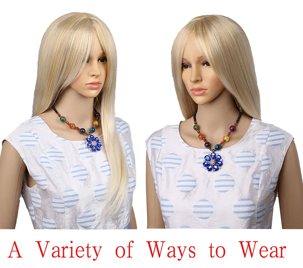 Амир длинные прямые светильник блондинка синтетические парики с челкой Косплэй волос для черныйбелый Для женщин высокое Температура волокна
