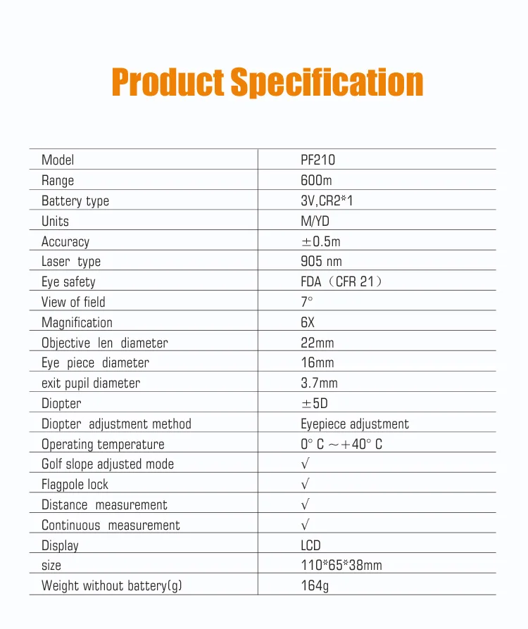 Mileseey PF210 600 м лазерный дальномер для гольфа, мини-гольф с отрегулированным режимом наклона, спортивный лазерный дальномер м