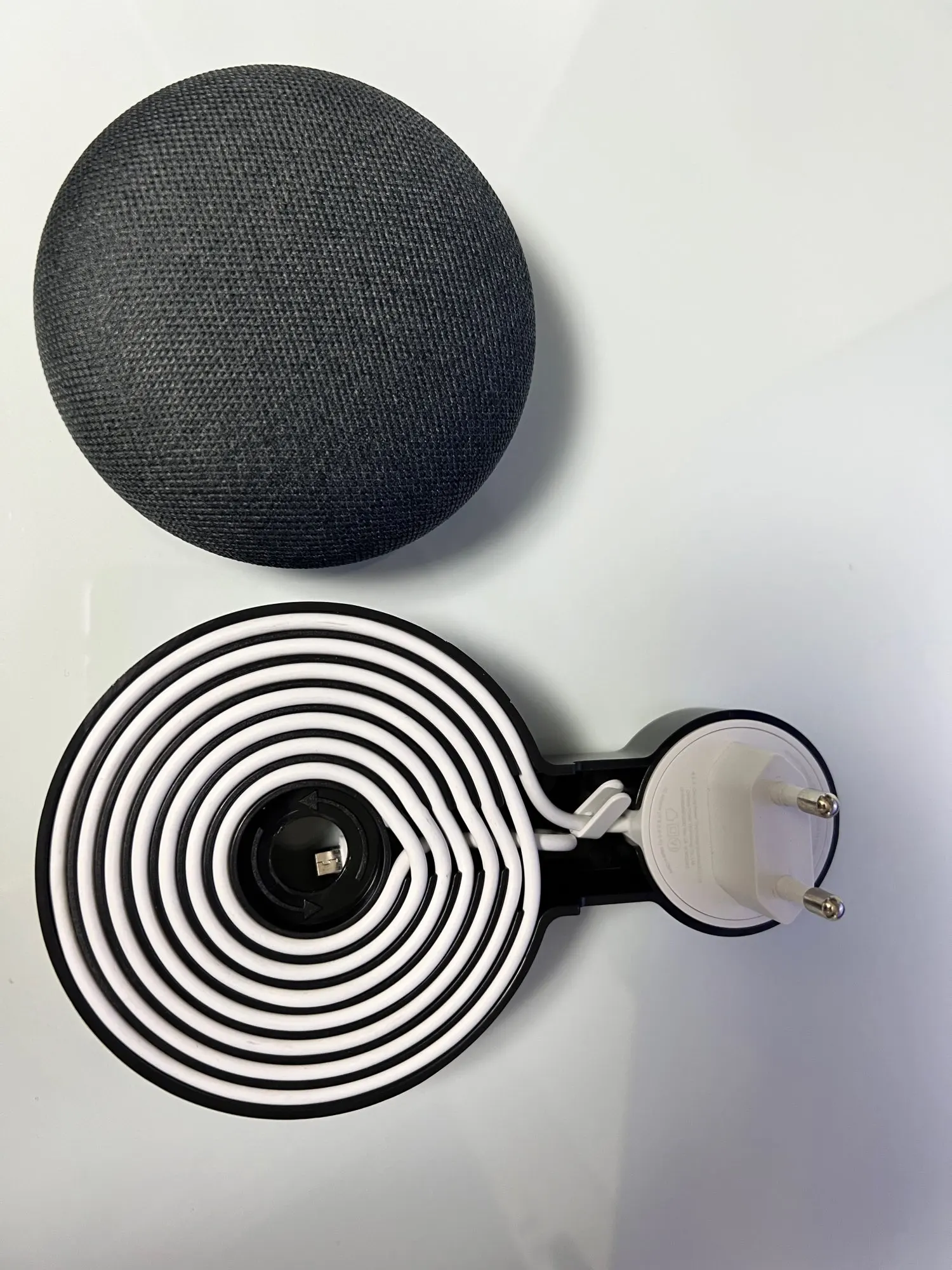 Хорошие продукты, google mini отлично вписывается в него, создает приятное впечатление. За исключением поддержки, слишком большой, не помещается в него. Поэтому я должен добавить опору внутрь противоскользящего пластика. Кабель идеально вписывается в него.