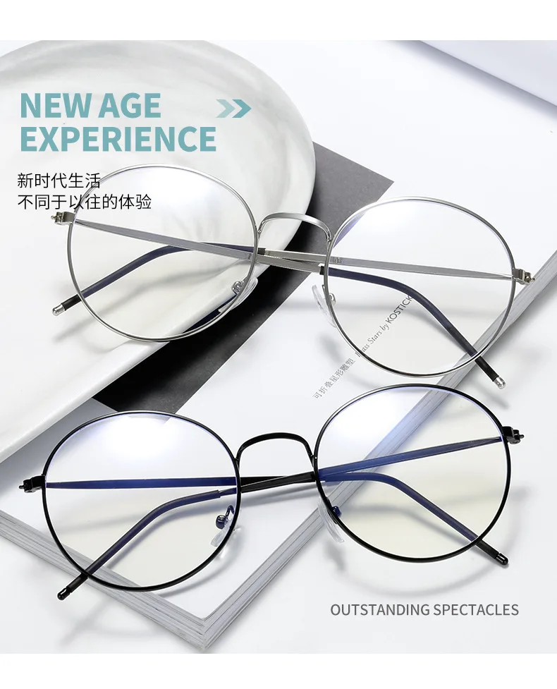Круглые анти-синие очки в оправе, модные очки для украшения компьютерного офиса, роскошные очки с металлической рамкой, радиационные очки