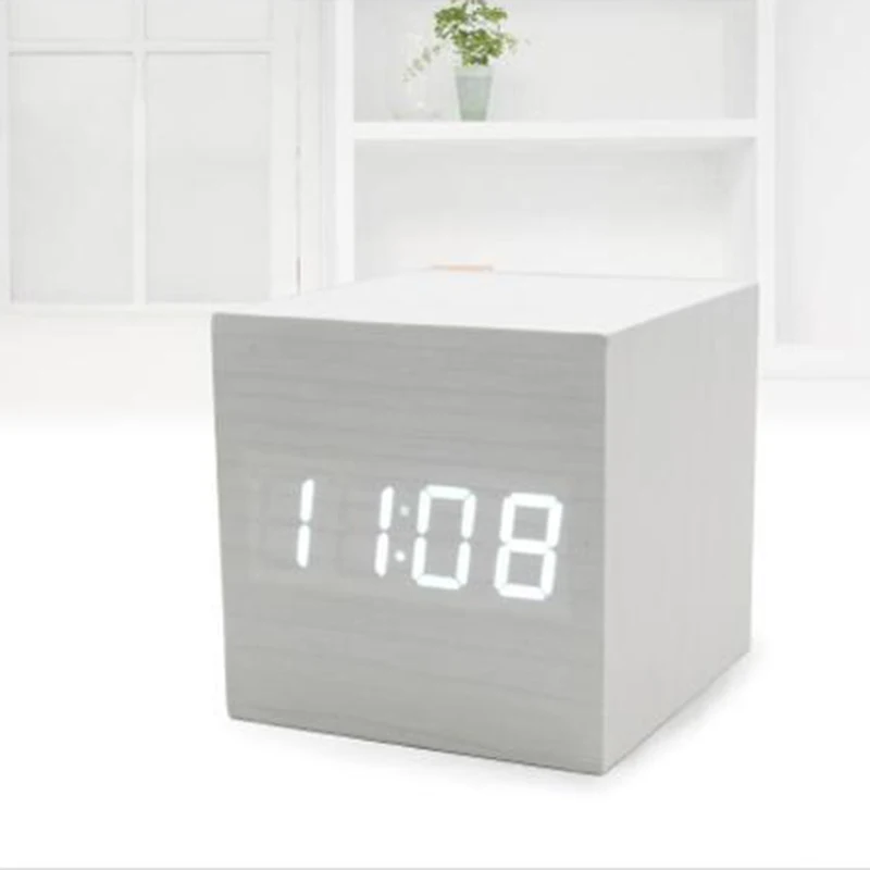 1 шт. современный деревянный цифровой светодиодный Настольный Будильник 60*60*60 мм таймер Голосовое управление многоцветный Настольный цифровой термометр