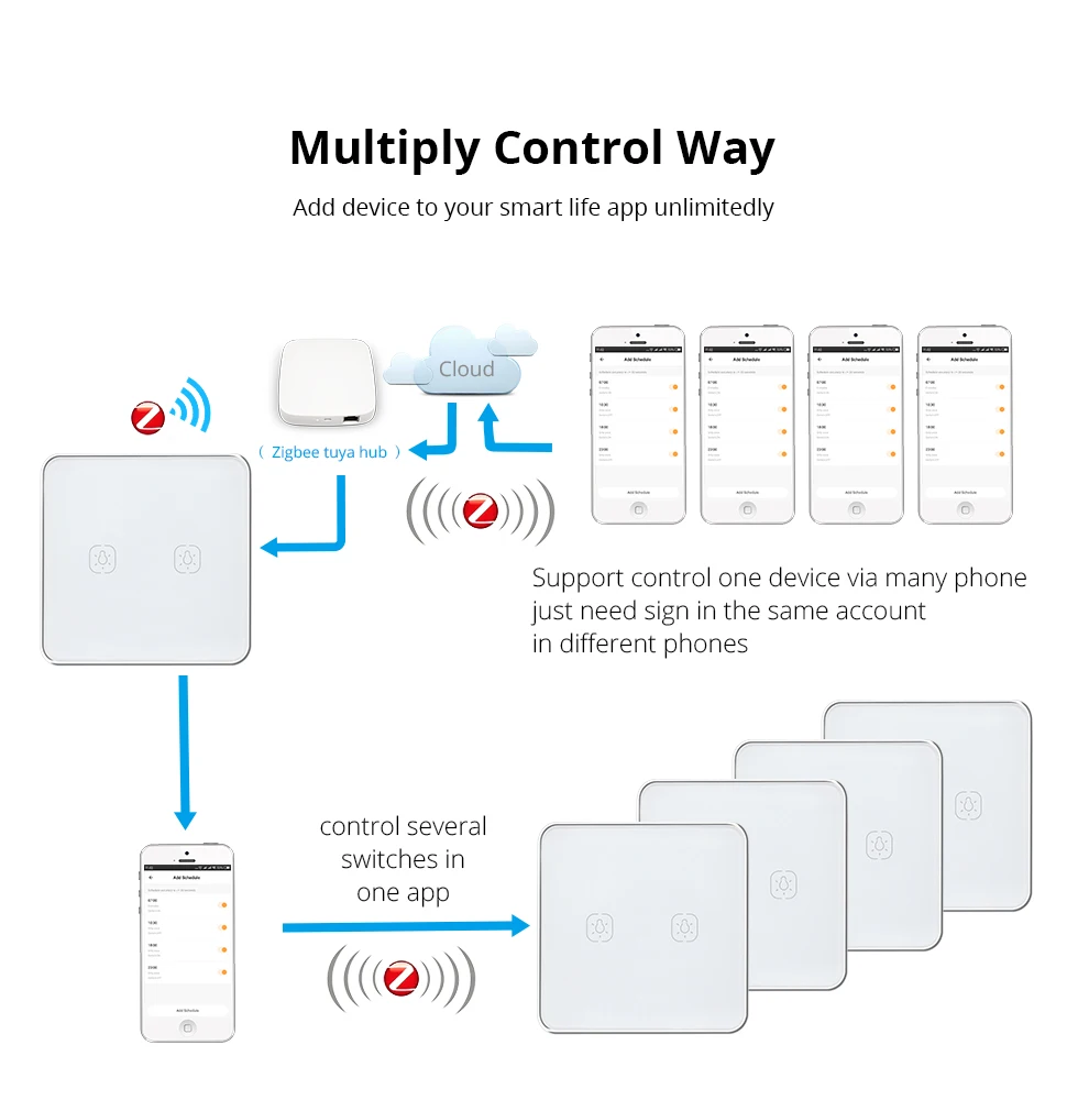 Zemismart Tuya Zigbee настенный выключатель Alexa Google Домашний Светильник без нейтрального провода 1 банда 2 3 банды