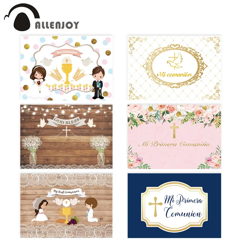 Allenjoy первый Святой Причастие фоны деревянный пол Цветы Крест решетка дети фотографические фоны баннер для фотосессии