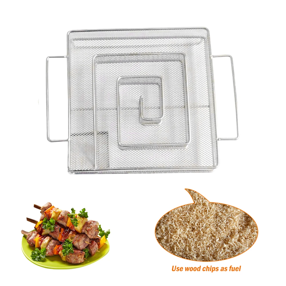 Новый квадратный генератор дыма из нержавеющей стали для барбекю, гриля или копчения древесной пыли, горячего и холодного копчения, лосося, бекона, мяса, приспособления для барбекю