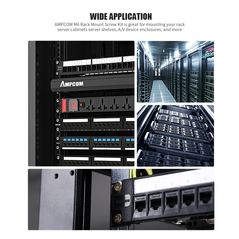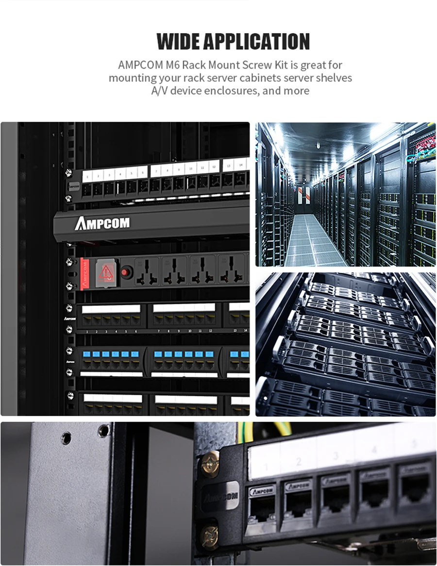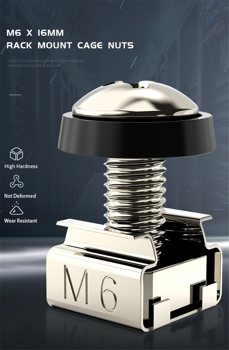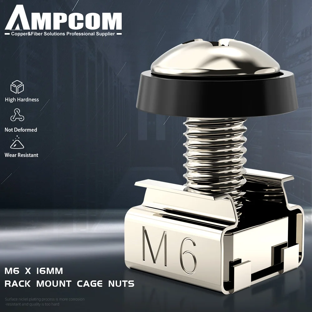Крепежные гайки, винты и шайбы AMPCOM M6 x 16 мм для серверного шкафа