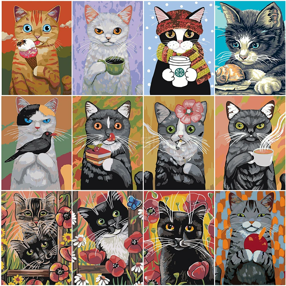 EverShine картина по номерам коты холсте Ручной росписью искусство стены украшения для дома