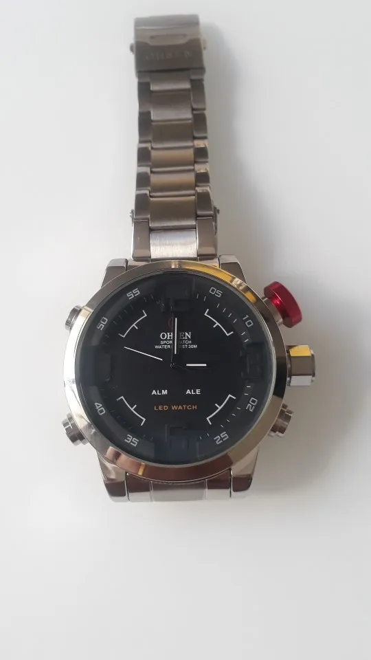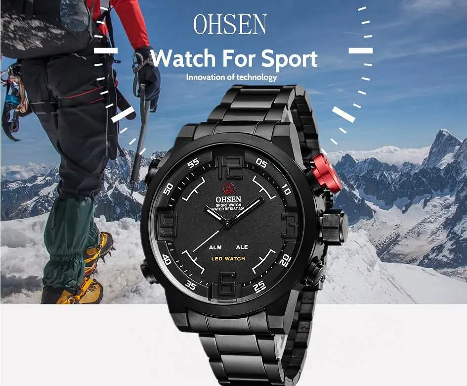 OHSEN Цифровые кварцевые мужские Бизнес наручные часы сплав чехол водонепроницаемые черные военные мужские часы модные многофункциональные спортивные часы