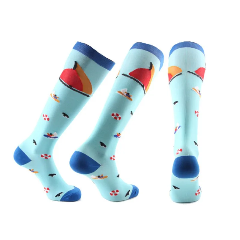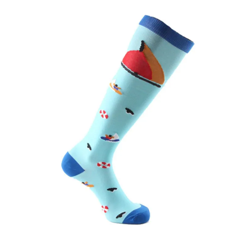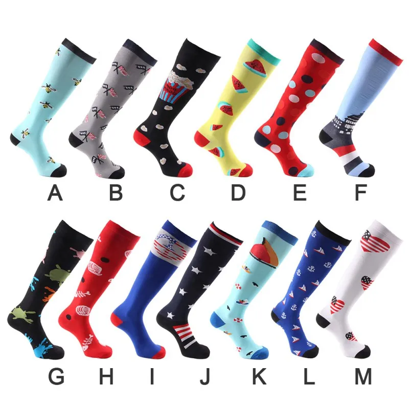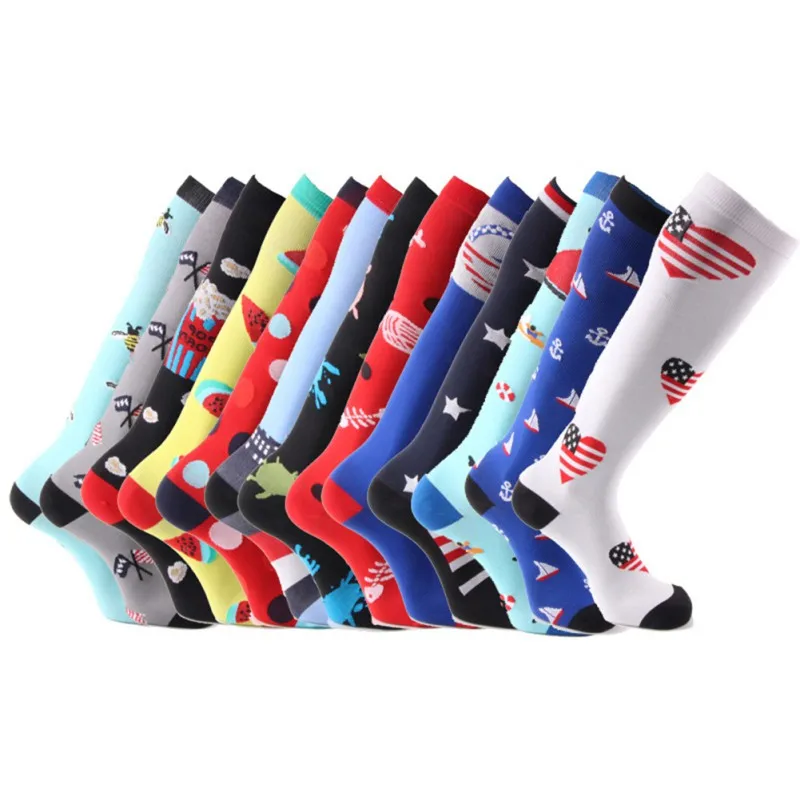 Носки компрессионные для мужчин и женщин, нейлоновые Мультяшные милые спортивные высокие носки для бега на открытом воздухе, веселые цветные Смешные для марафона, унисекс