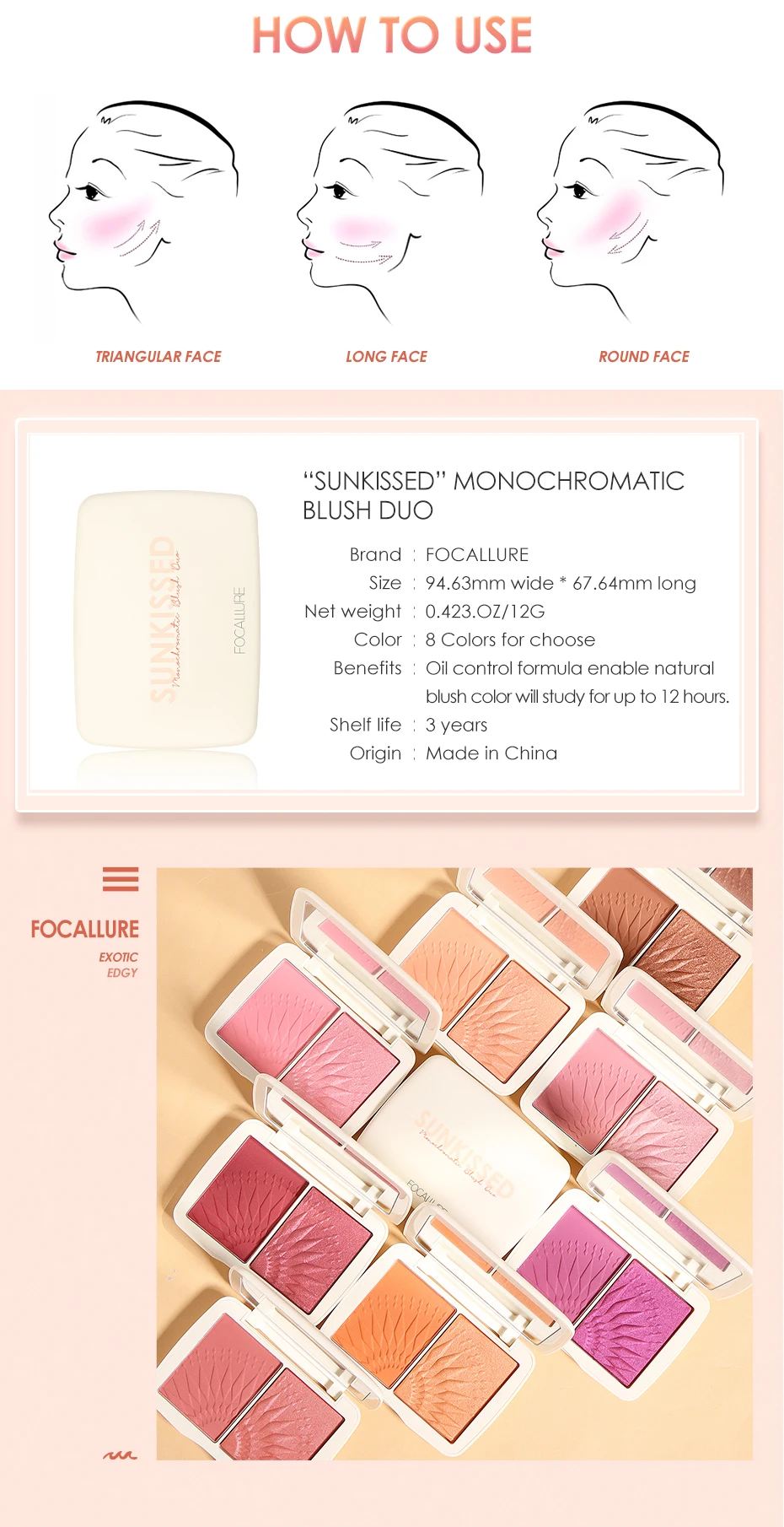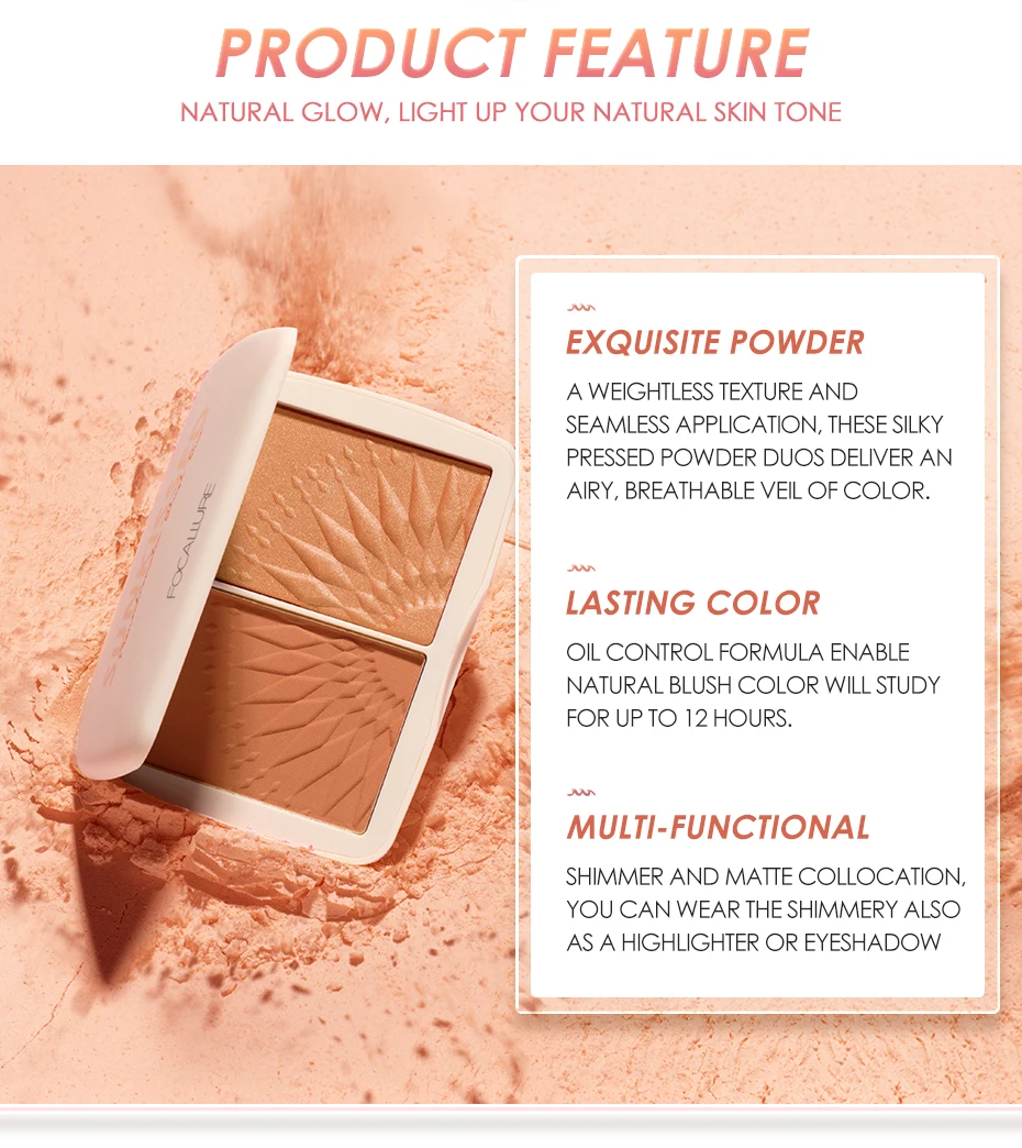 FOCALLURE Макияж для лица бронзатор палитра гладкая пигментированная без талька натуральные матовые румяна порошок
