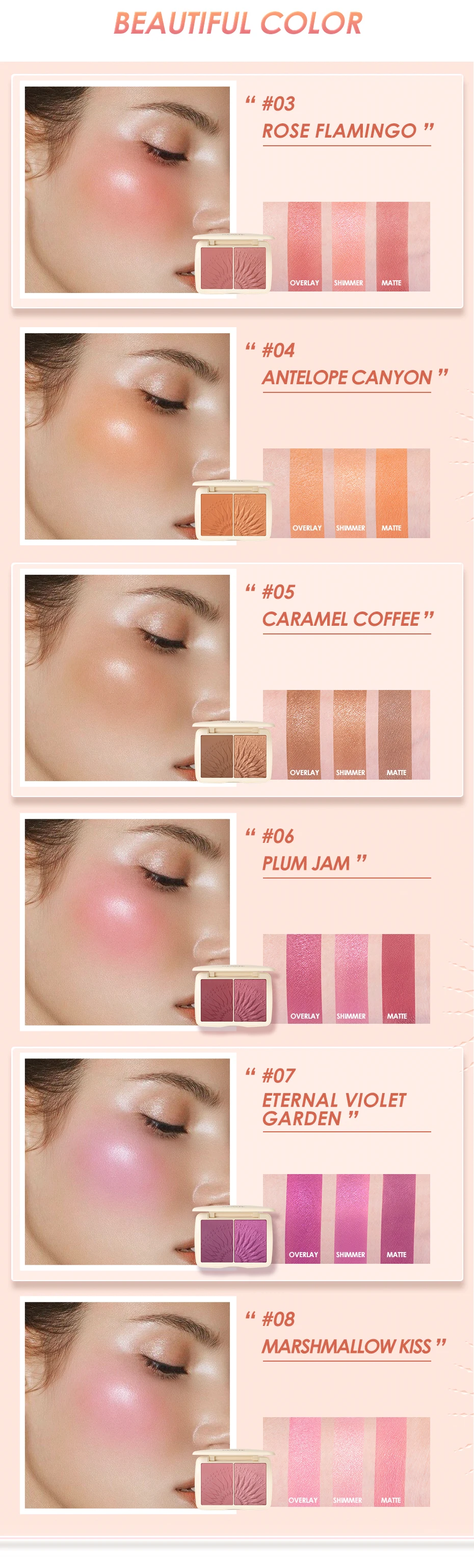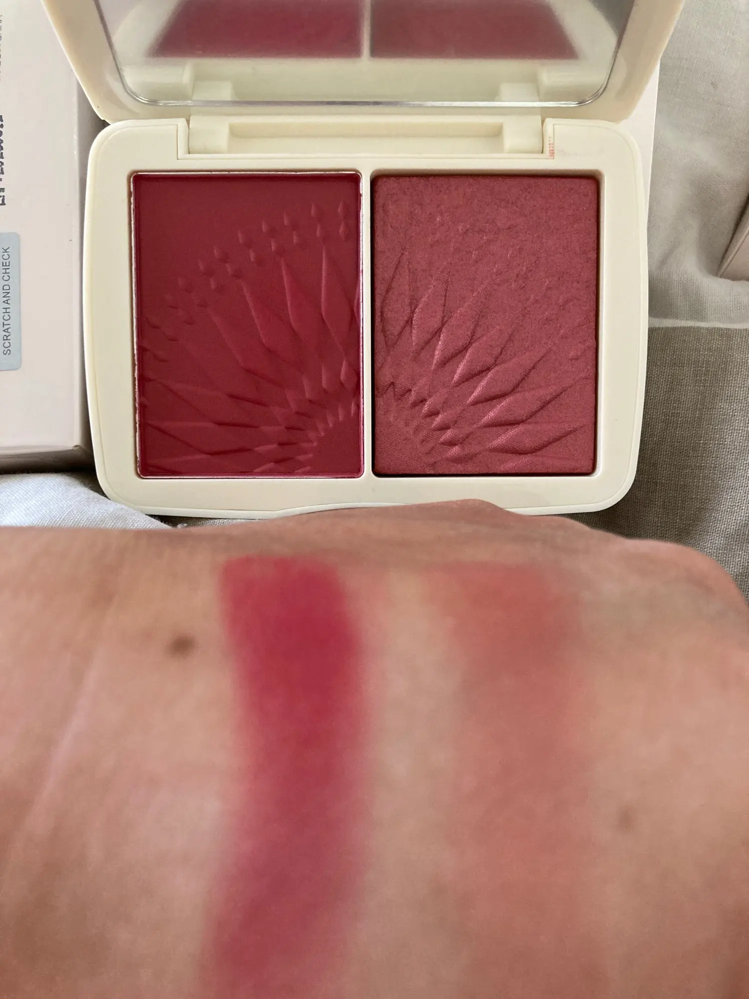 Очень пигментированные румяна. Оттенок 3 прямо красный. Нравится этот бренд, приобрела много продуктов от них. Супер!