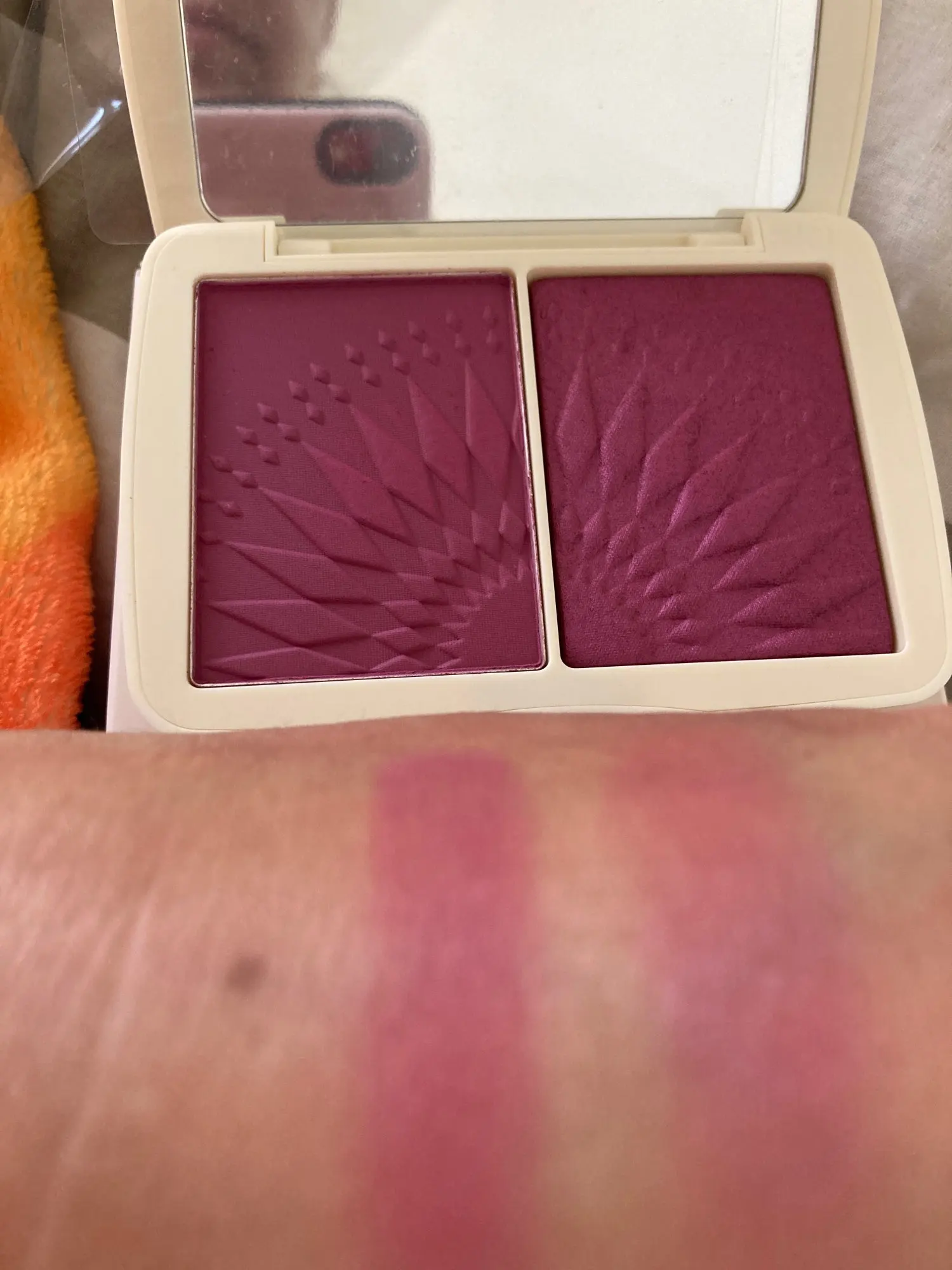 Очень понравилось! Это то, что мне надо!!! Румяна с хайлайтером крутые!!! Качество отличное!!! Упаковка достойная... Буду заказывать ещё. Я заказывала ещё несколько товаров в этом магазине. Отдельное Спасибо за подарок!!!! Бонус... тени. Круто!!! Благодарю!