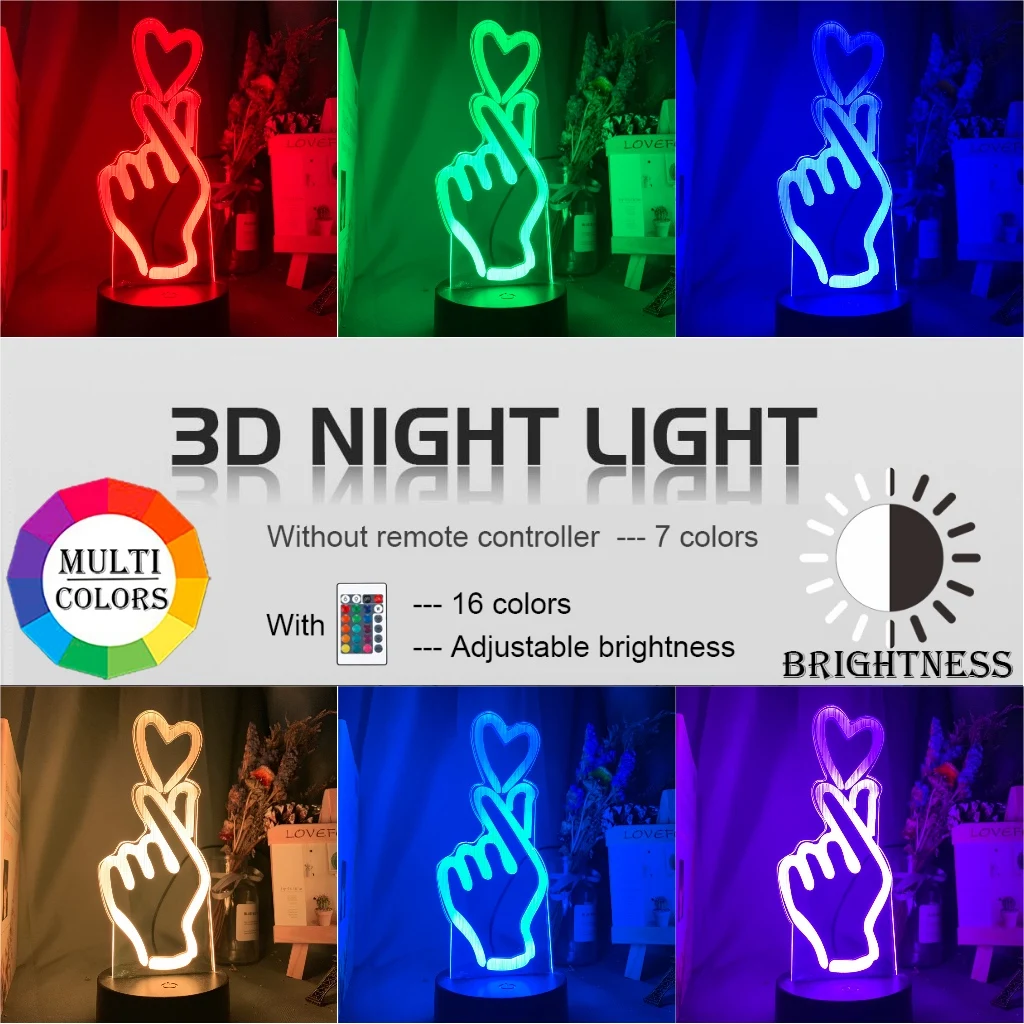 Светодиодный ночсветильник в виде сердца на палец с сенсорным датчиком, цветной детский ночник для спальни, украшение, настольная лампа с питанием от Usb и аккумулятором, подарок