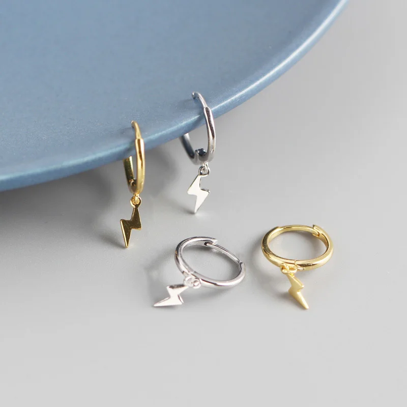 Особенности: серьги-кольца, 925 пробы серебряные серьги, мини-серьги, серьги с молниями, маленькие серьги, серьги-подвески, подарки на ювелирные изделия