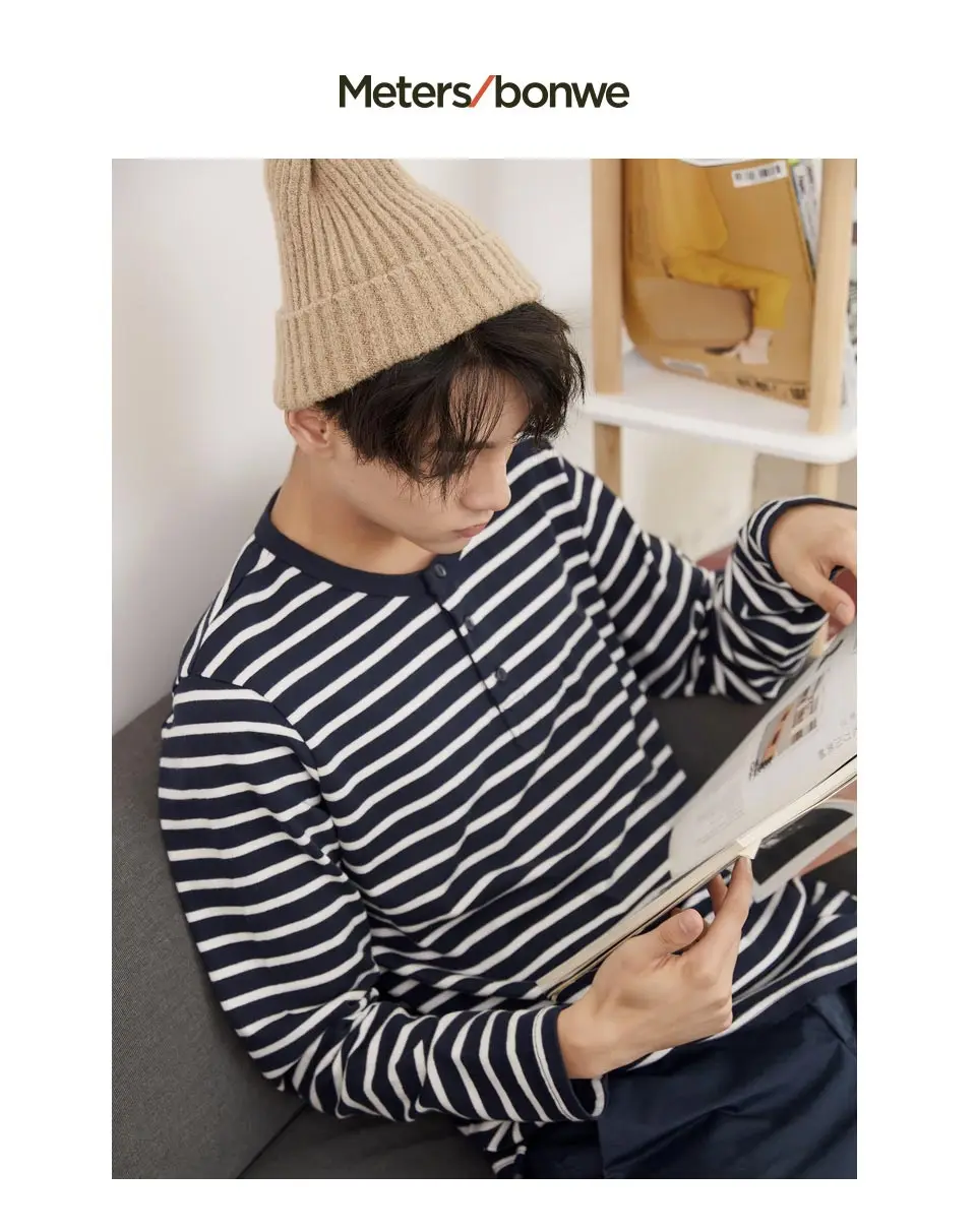 Metersbonwe осень-зима Мужская Высококачественная полосатая рубашка Harajuku Модные мужские толстовки