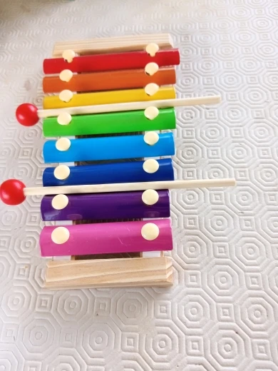 Это конечно не настоящий муз.инструмент. Нет того протяжного и долгого звучания, как на настоящем ксилофоне, но ноты вроде отыгрывает. Быстрая доставка. Ребенку поиграть нормально.