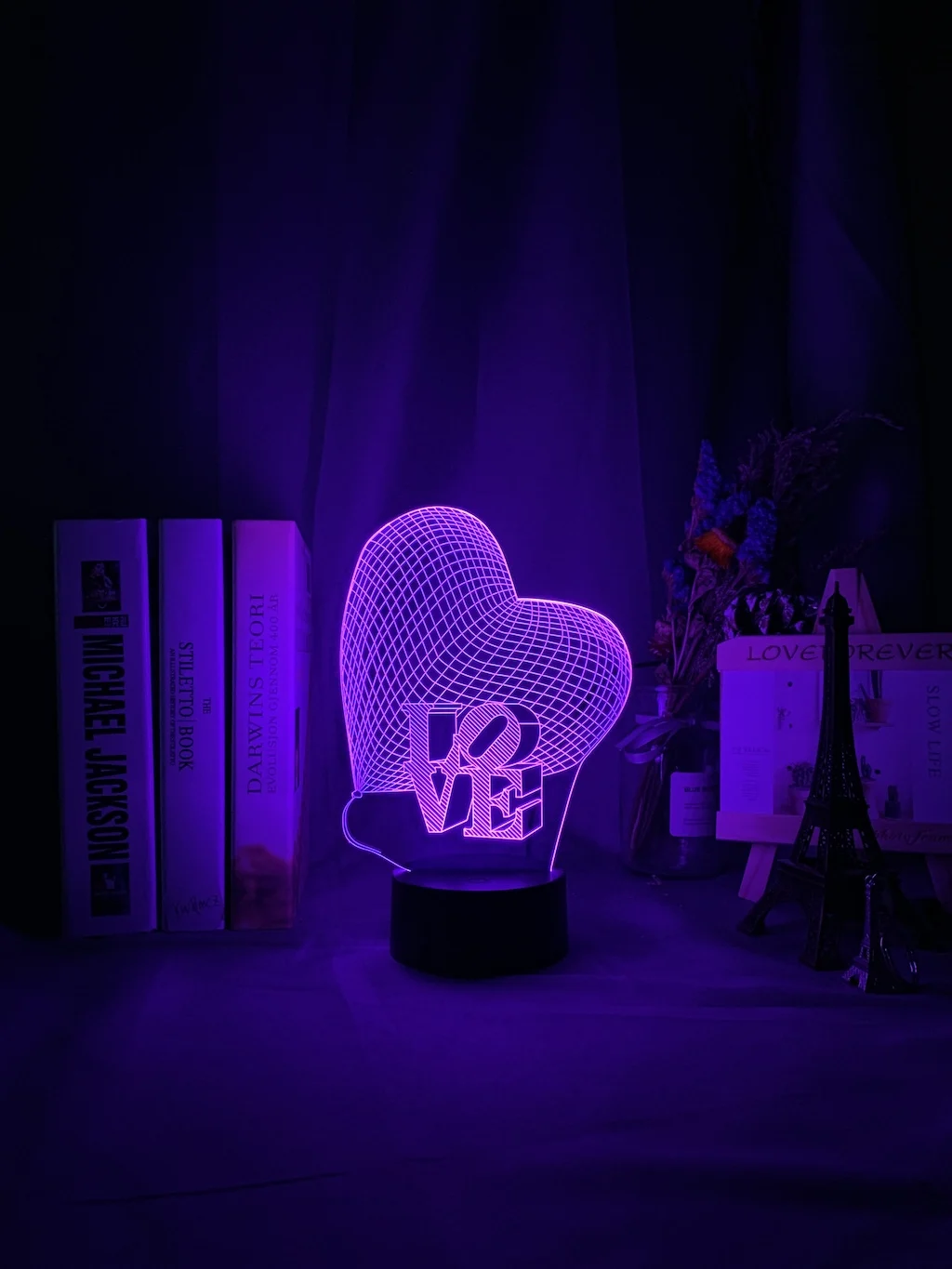 Ночник с 3d-изображением сердца, с голограммой, с изменяющимся цветом, для украшения дома, уникальный подарок для малыша