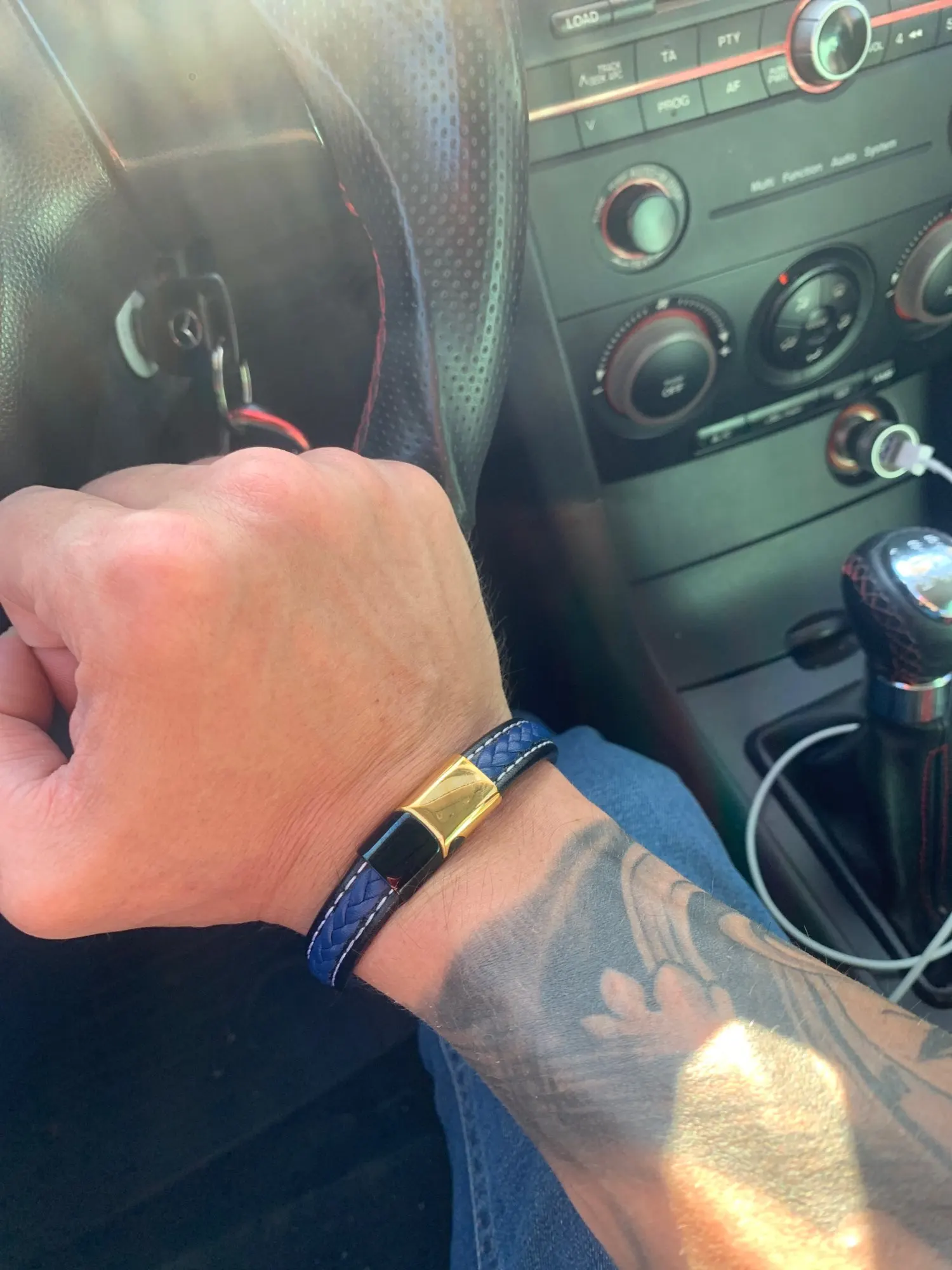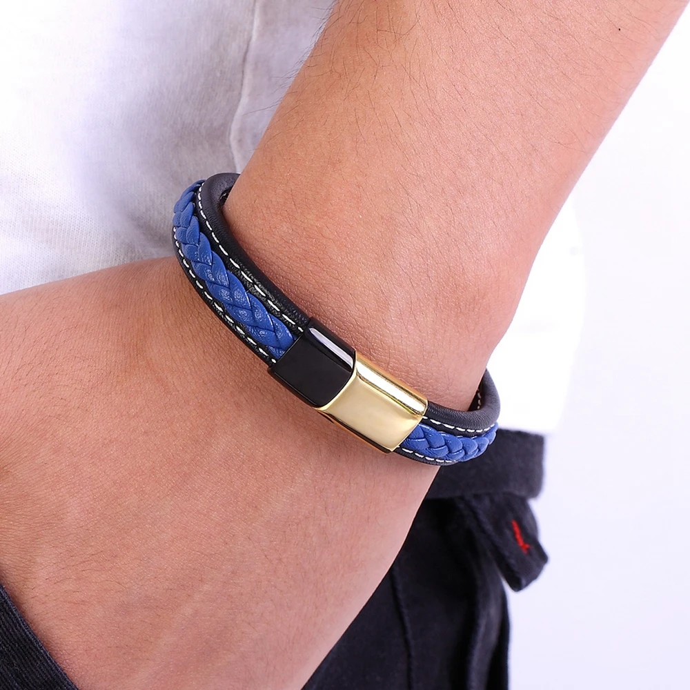 Мужской кожаный браслет из нержавеющей стали, комбинированная синяя кожа, модные аксессуары для красивых мальчиков, подарок на день рождения