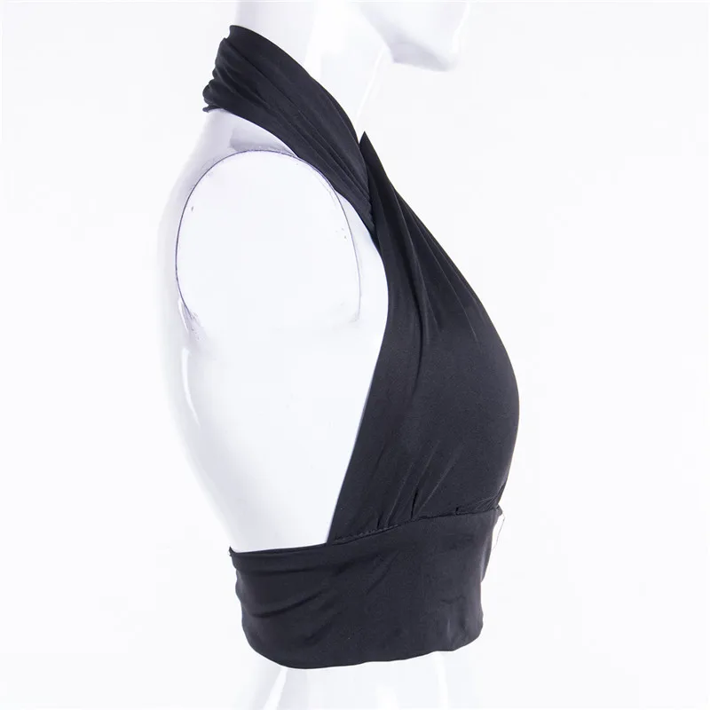 Топ женский на бретелях, с перекрещивающимися спереди вырезами, воротником-хомутом, без рукавов, с открытой спиной, летний, S-XL