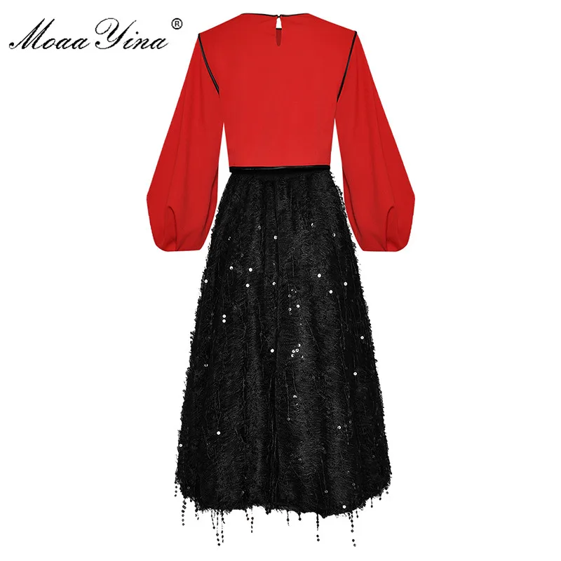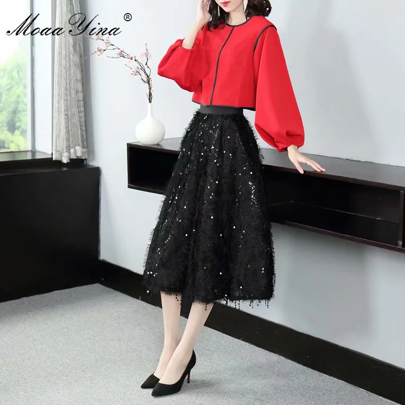 Женский дизайнерский комплект из 2 предметов MoaaYina, топ с рукавами-фонариками и юбка с блестками и кисточками, весна-лето