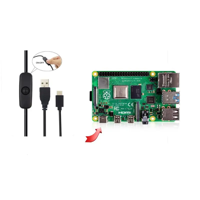 Кабель Raspberry Pi 4 USB Type-C, 5 В, 3 А с переключателем, кабель...